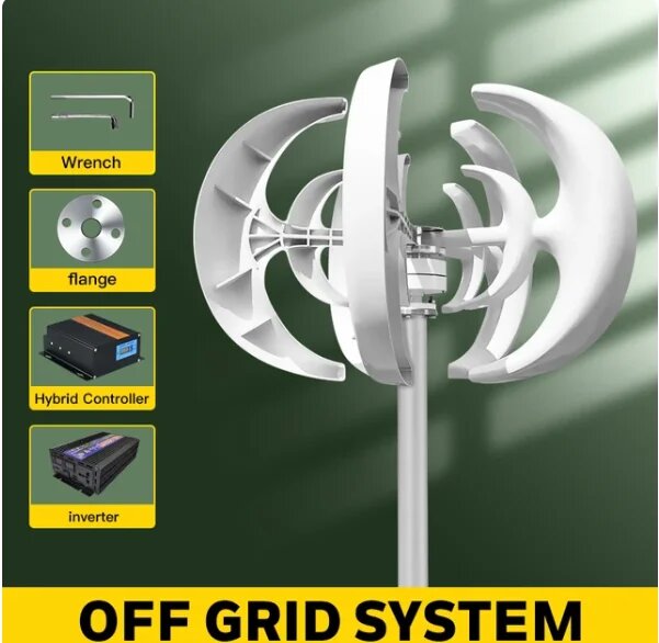 Вертикальная ветряная турбина 3000 Вт с бесплатным зарядным контроллером для яхт и ферм, white, MPPT Hybrid Control, 12 В, 3000 Вт интересное: