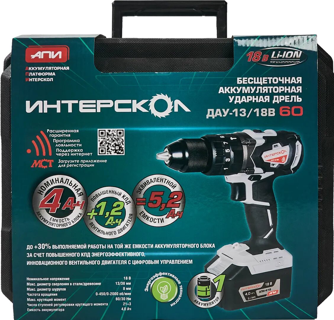 ДАУ-13/18В 80 бесщеточная ударная аккум. дрель-шуруп. Li-ion АПИ (кейс, 1 аккум. 4,0Ач, ЗУ) Интерско интересное: