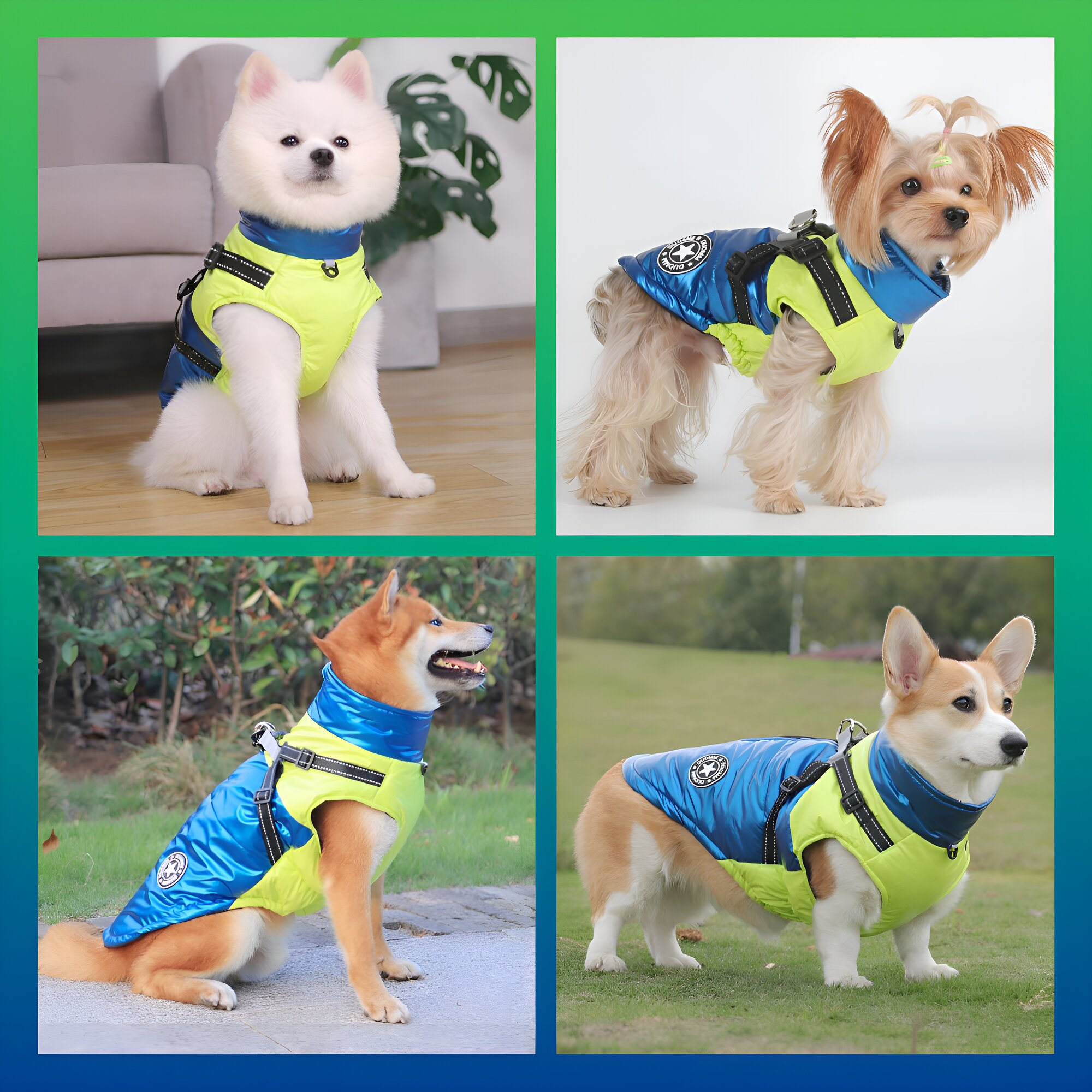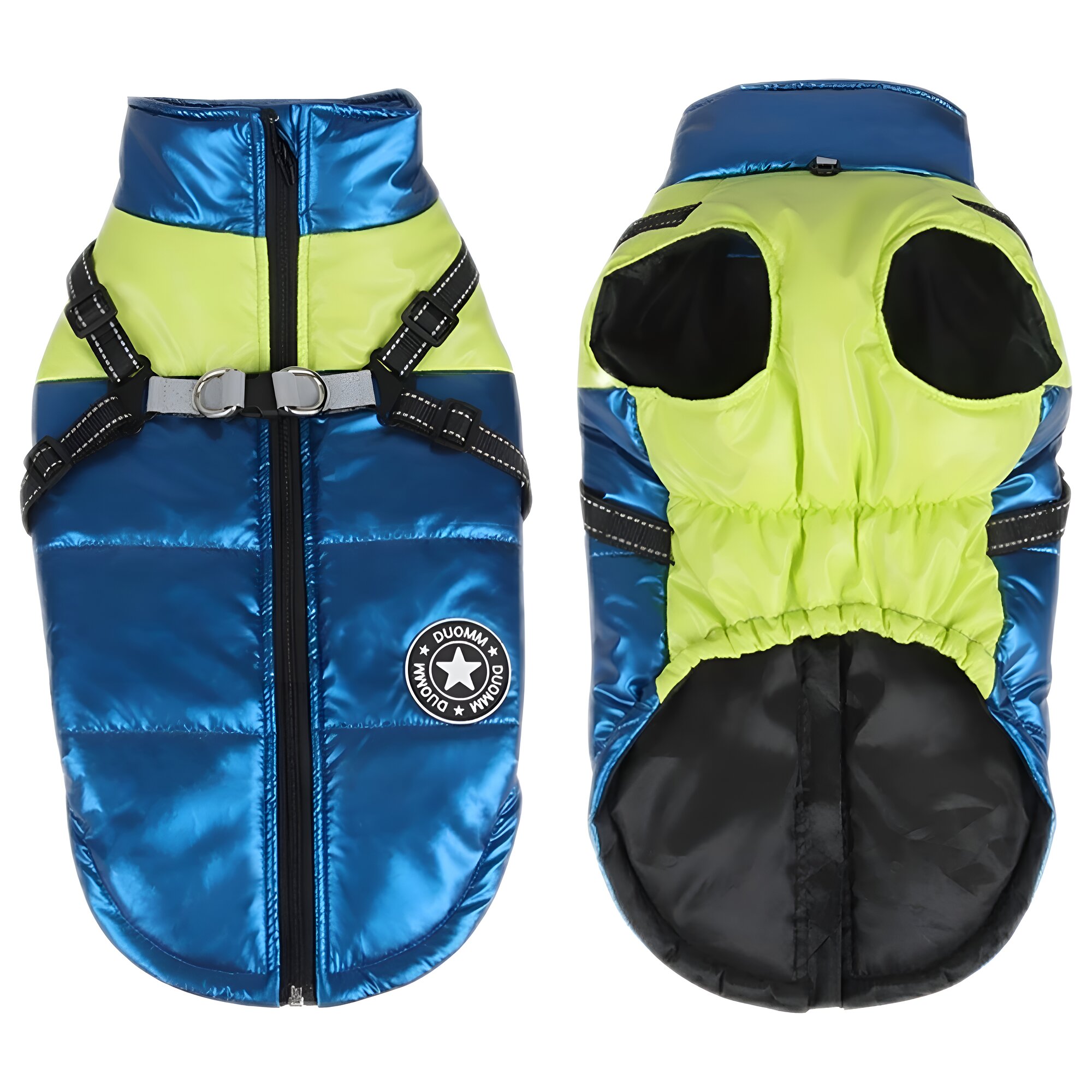 Жилет утепленный для собак средних пород, синий/зеленый, 2XL