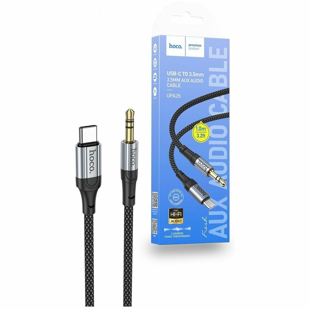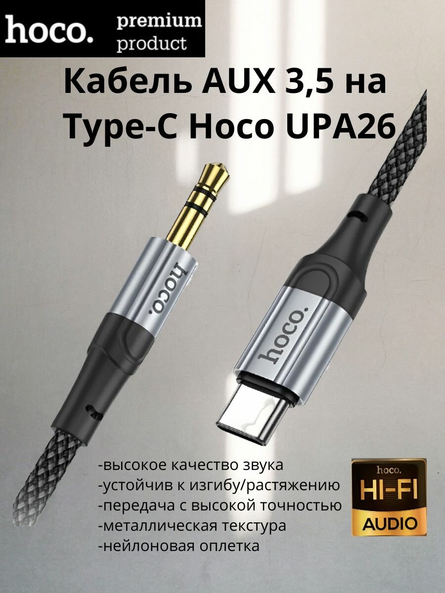 AUX Audio кабель 3,5 мм на Type-C, UPA26, HOCO, черный