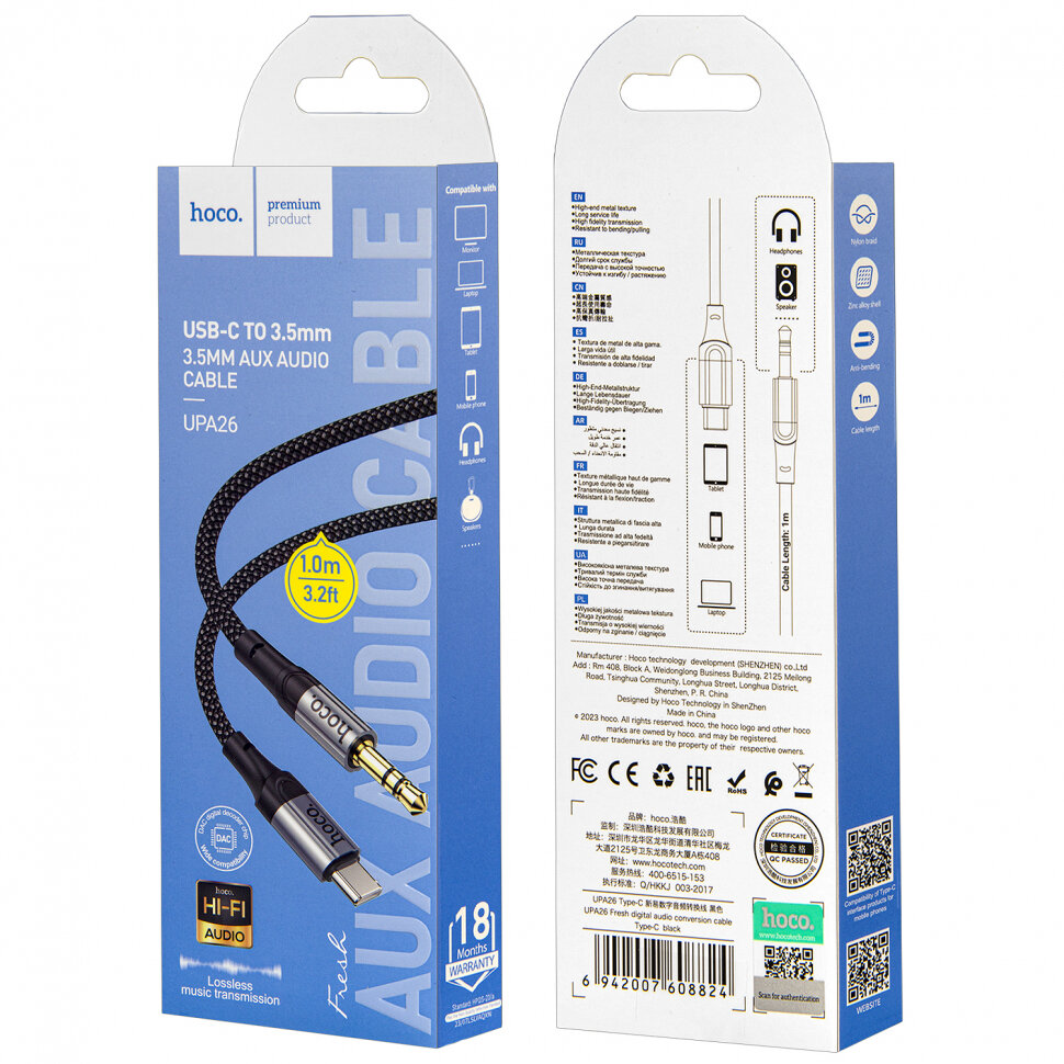 Ниже Вы можете прочитать отзывы на Кабель AUX, Type-C(m) - Jack 3,5mm(m) HOCO UPA26, Fresh, 1.0м, цвет: чёрный, ознакомится с подробными характеристиками, посмотреть интересные обзоры и фотографии на Кабель AUX, Type-C(m) - Jack 3,5mm(m) HOCO UPA26, Fresh, 1.0м, цвет: чёрный.