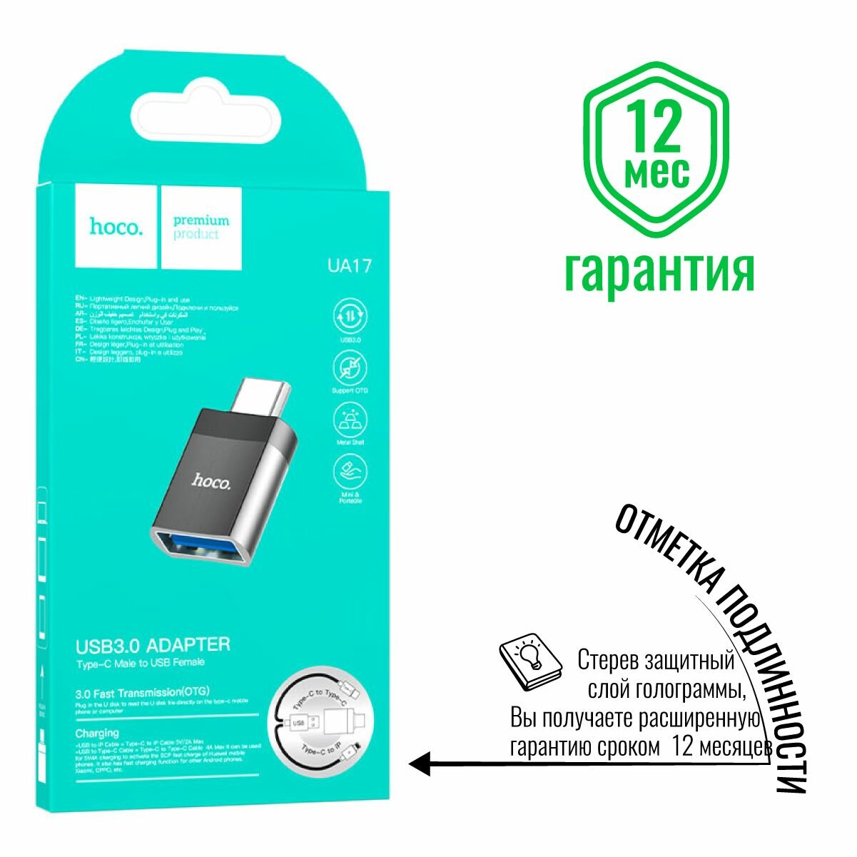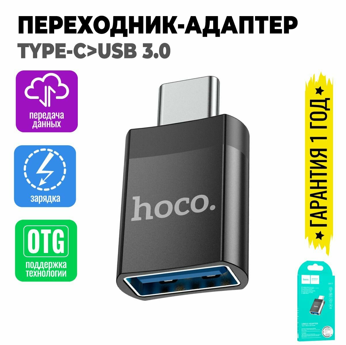 Адаптер-переходник Hoco UA17 Type-C - USB 3.0 черный, поддержка OTG функции и передачи данных, зарядка 2A / 4A.