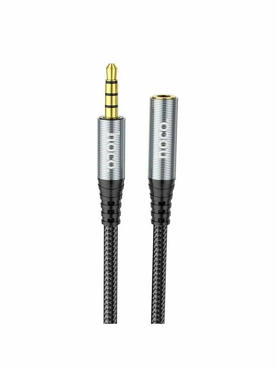 Кабель HOCO UPA20 3.5 audio extension cable male to female 1м аудио кабель выход Jack 3,5 - вход Jack 3,5 серый металлик