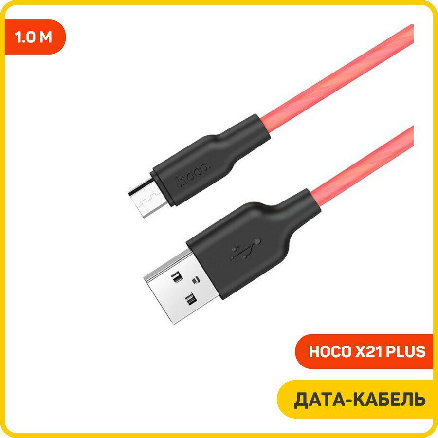 USB кабель Hoco X21 Plus Silicon Micro, 1 м, черный с красным