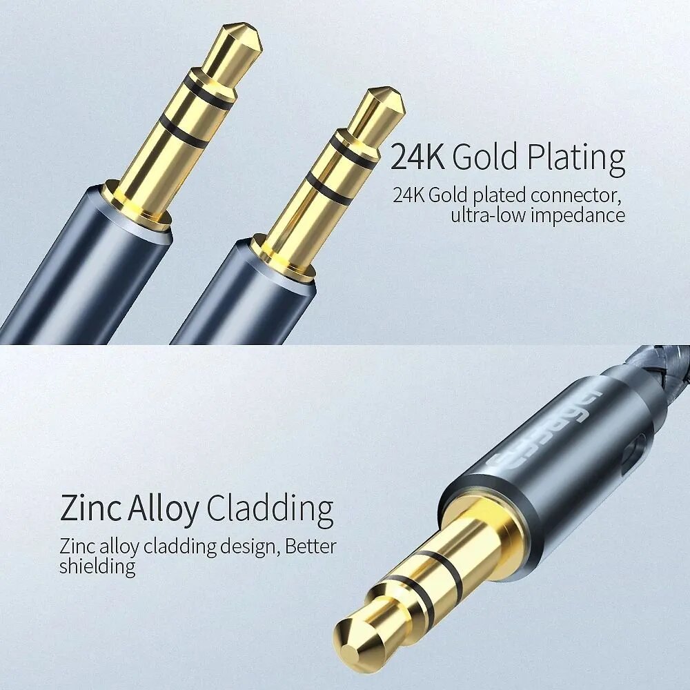 Aux кабель Essager 3.5 мм, 3 метра, аукс кабель в машину, акустический кабель для наушников, аудио кабель 3.5 мм (Серый) интересное:
