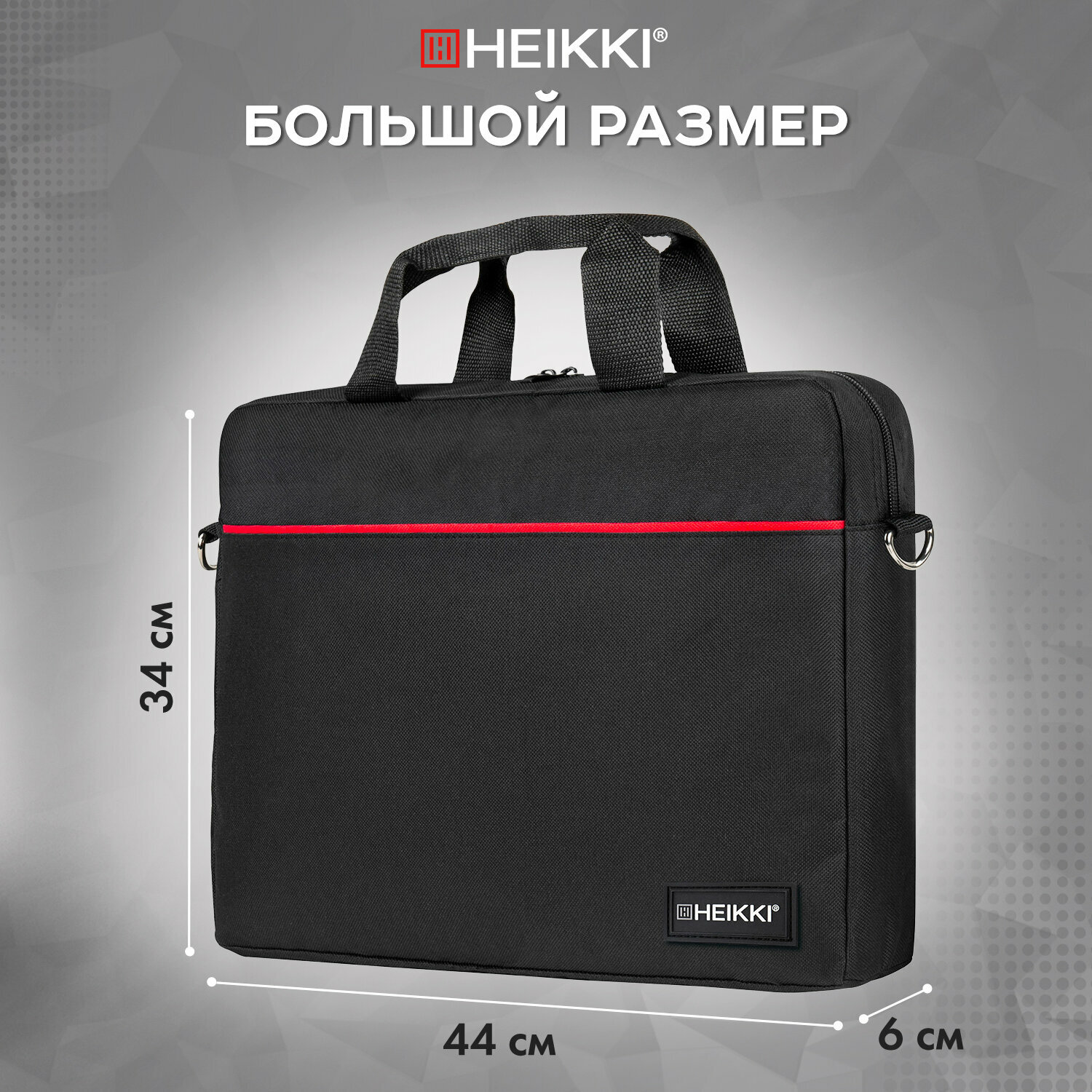 СохранитьСумка портфель HEIKKI MAXIMUM (хейки) с отделением для ноутбука 17,3", черная с красной вставкой, 34х44х6 см, 272591, 1шт в компл. интересное: