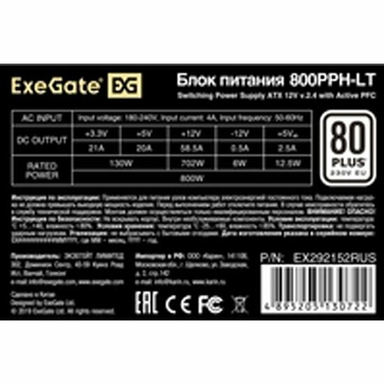 Ниже Вы можете прочитать отзывы на Блок питания Exegate 800PPH-LT, 800W (EX292152RUS), ознакомится с подробными характеристиками, посмотреть интересные обзоры и фотографии на Блок питания Exegate 800PPH-LT, 800W (EX292152RUS).