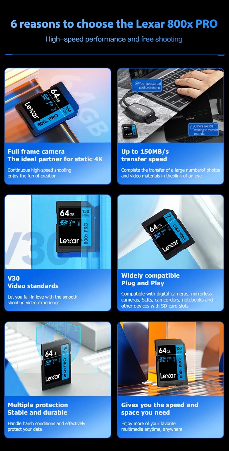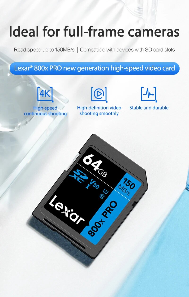 Ниже Вы можете прочитать отзывы на 256GB SDXC Карта памяти Lexar High-Performance 800x PRO BLUE Series (LSD0800256G-BNNNG), ознакомится с подробными характеристиками, посмотреть интересные обзоры и фотографии на 256GB SDXC Карта памяти Lexar High-Performance 800x PRO BLUE Series (LSD0800256G-BNNNG).