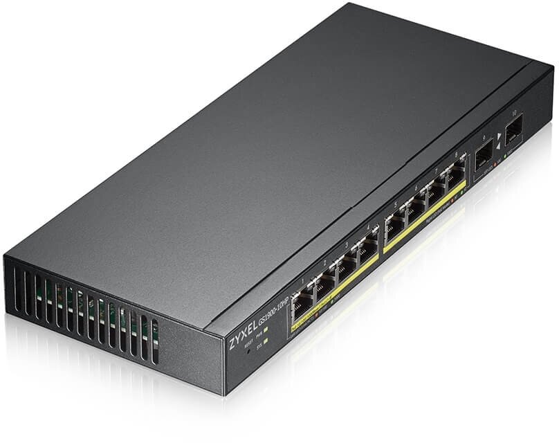 Купить Коммутатор Smart L2 PoE+ Zyxel GS1900-10HP, 8xGE PoE+, 2xSFP, настольный, бесшумный, бюджет PoE 77 Вт