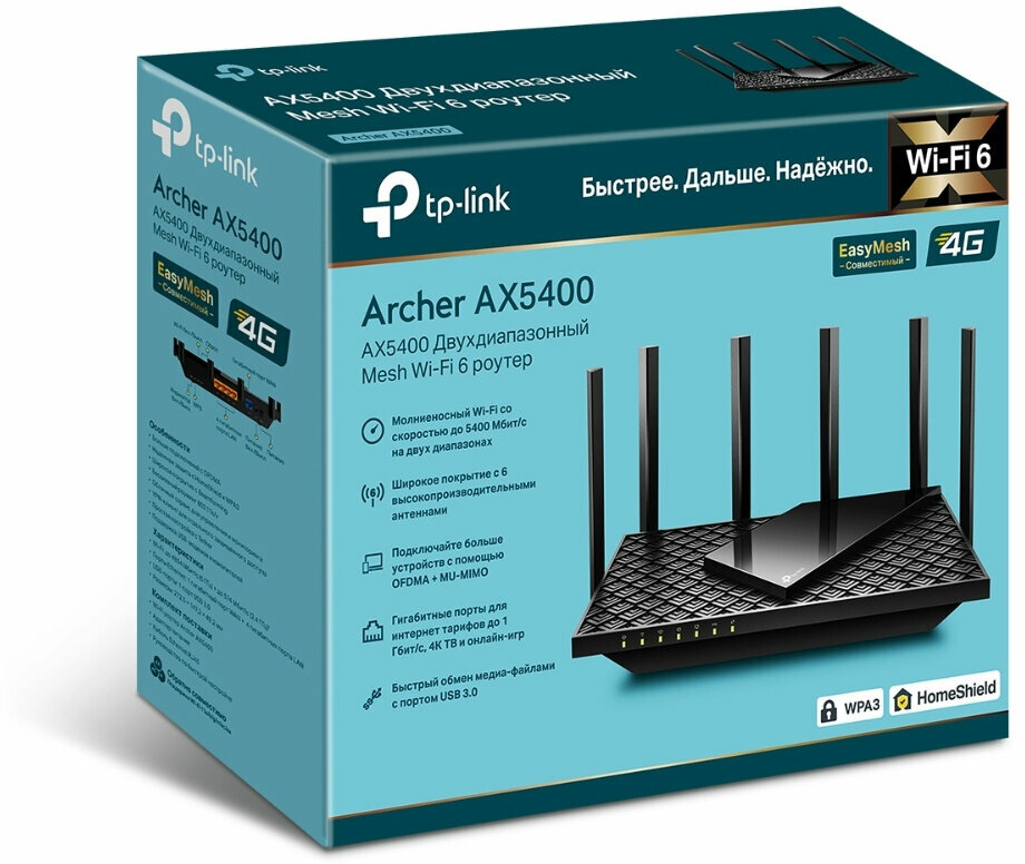 Wi-Fi роутер TP-Link Archer AX5400 802.11ax Wi-Fi 6 черный интересное: