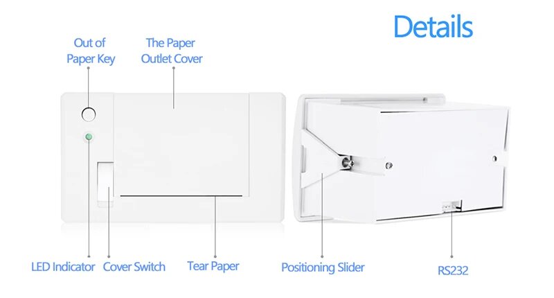 Мини термопринтер чеков, 58 мм, параллельный POS-принтер для встраиваемых билетов, интерфейс RS232/TTL, с 5-9 в для Arduino, Android, Black With RS232