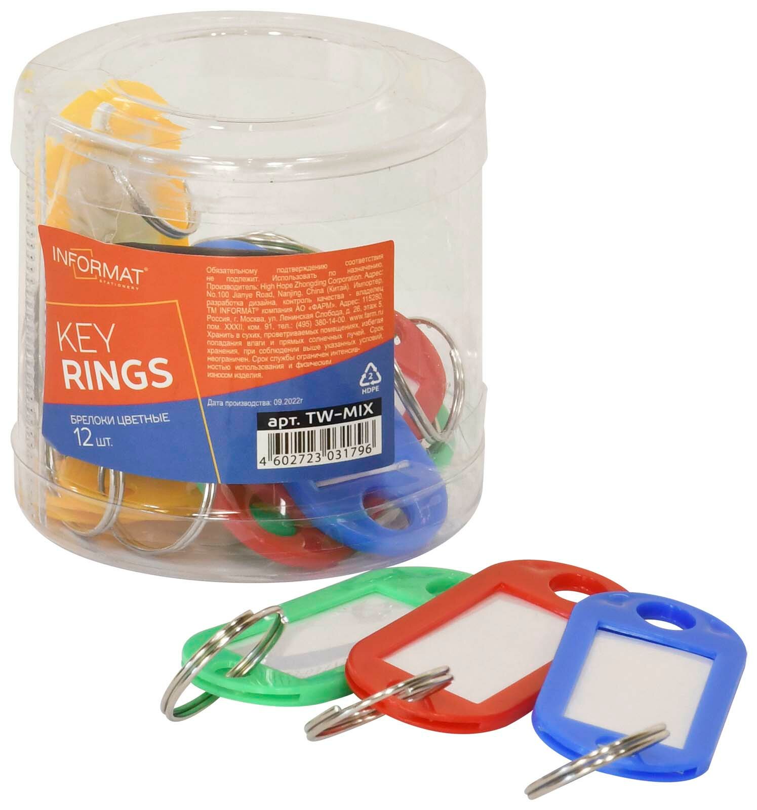 Брелоки для ключей inформат пластик, ассорти цветов, 12 шт (TW-MIX) интересное: