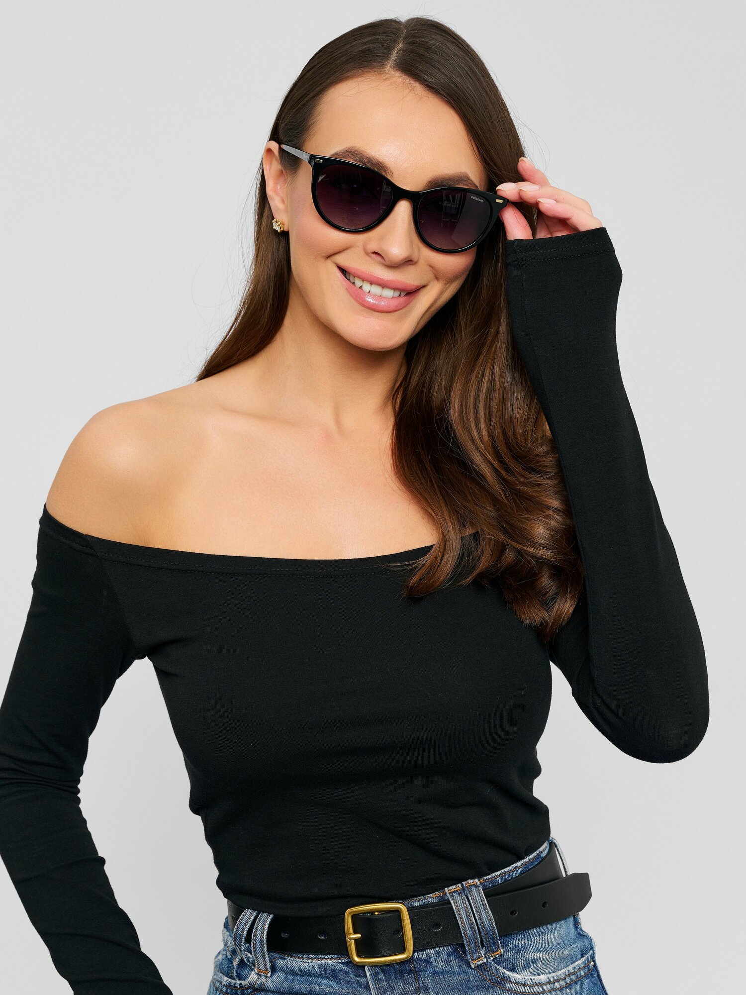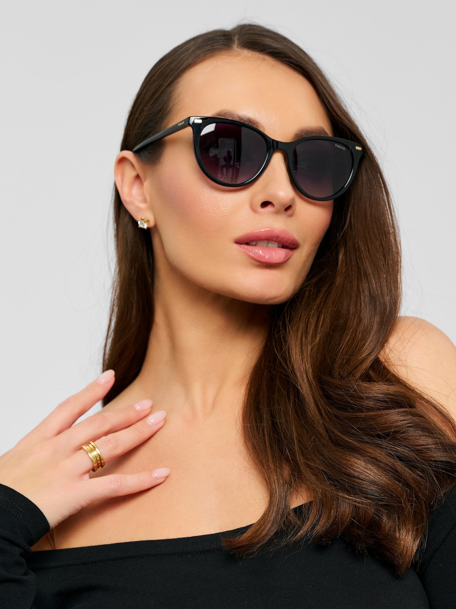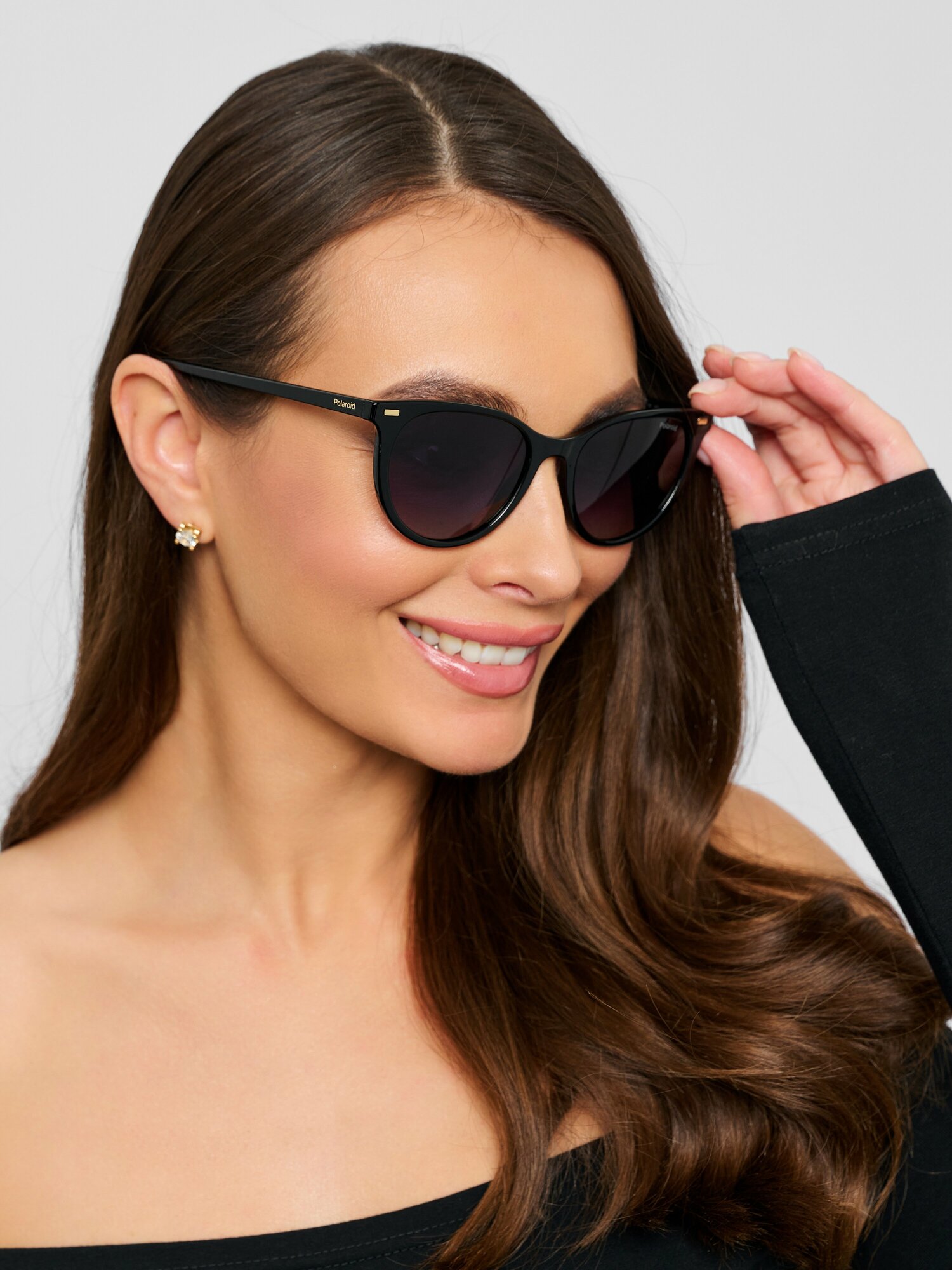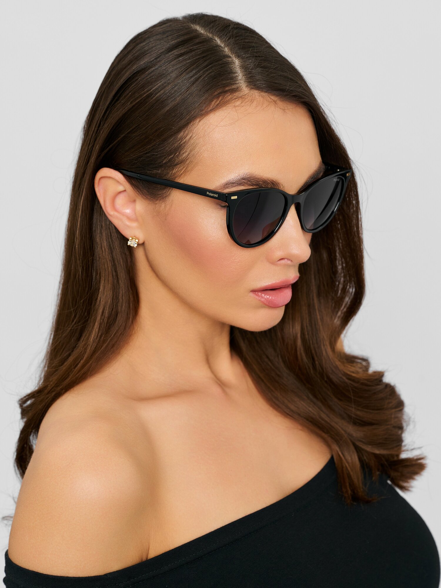 Женские солнцезащитные очки Polaroid PLD 4107/S 086 LA, цвет: коричневый, цвет линзы: серый, кошачий глаз, пластик