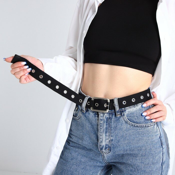 Ремень женский, ширина 3.2 см, люверсы, пряжка металл, винт, цвет чёрный интересное: