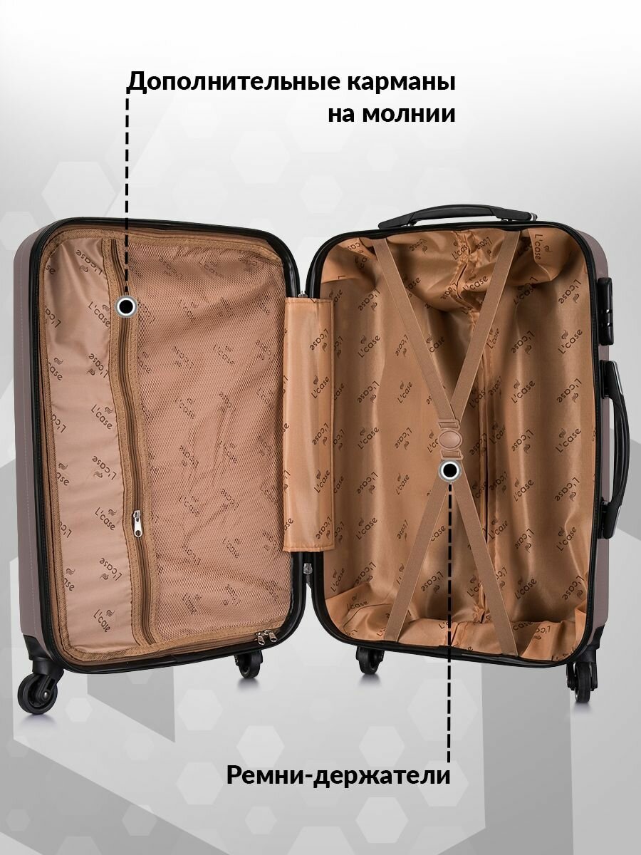 Чемодан на колесах M средний, коричневый - Чемодан ABS - пластик, семейный Lcase