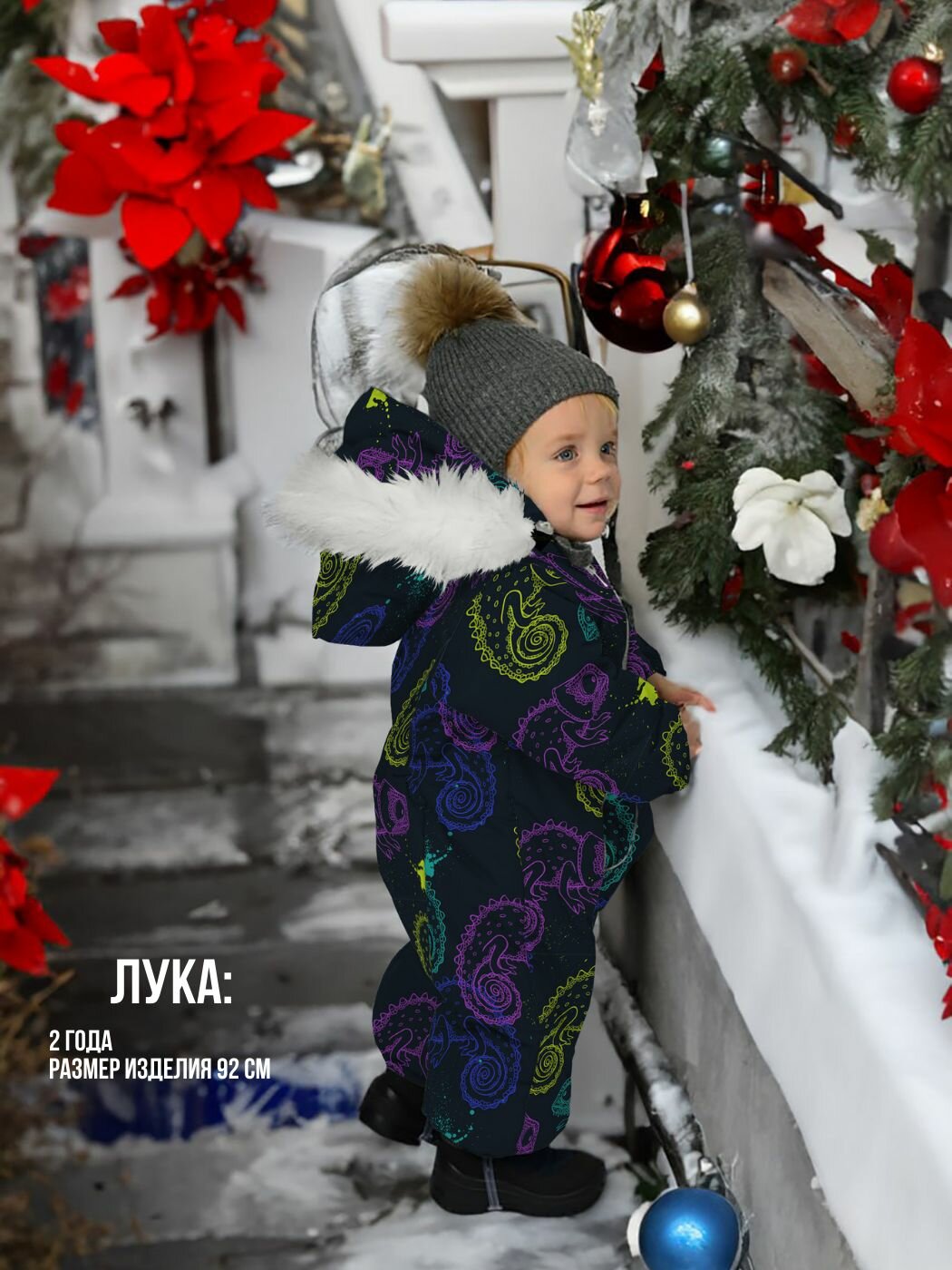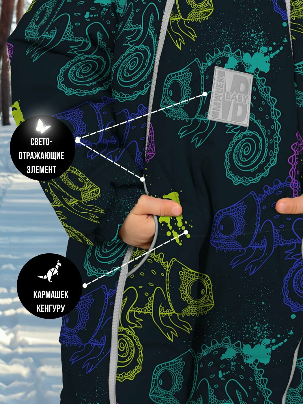 Комбинезон-трансформер детский зимний. Malek Baby. Львята + зеленые слонята, 263ш/2 (80 см)