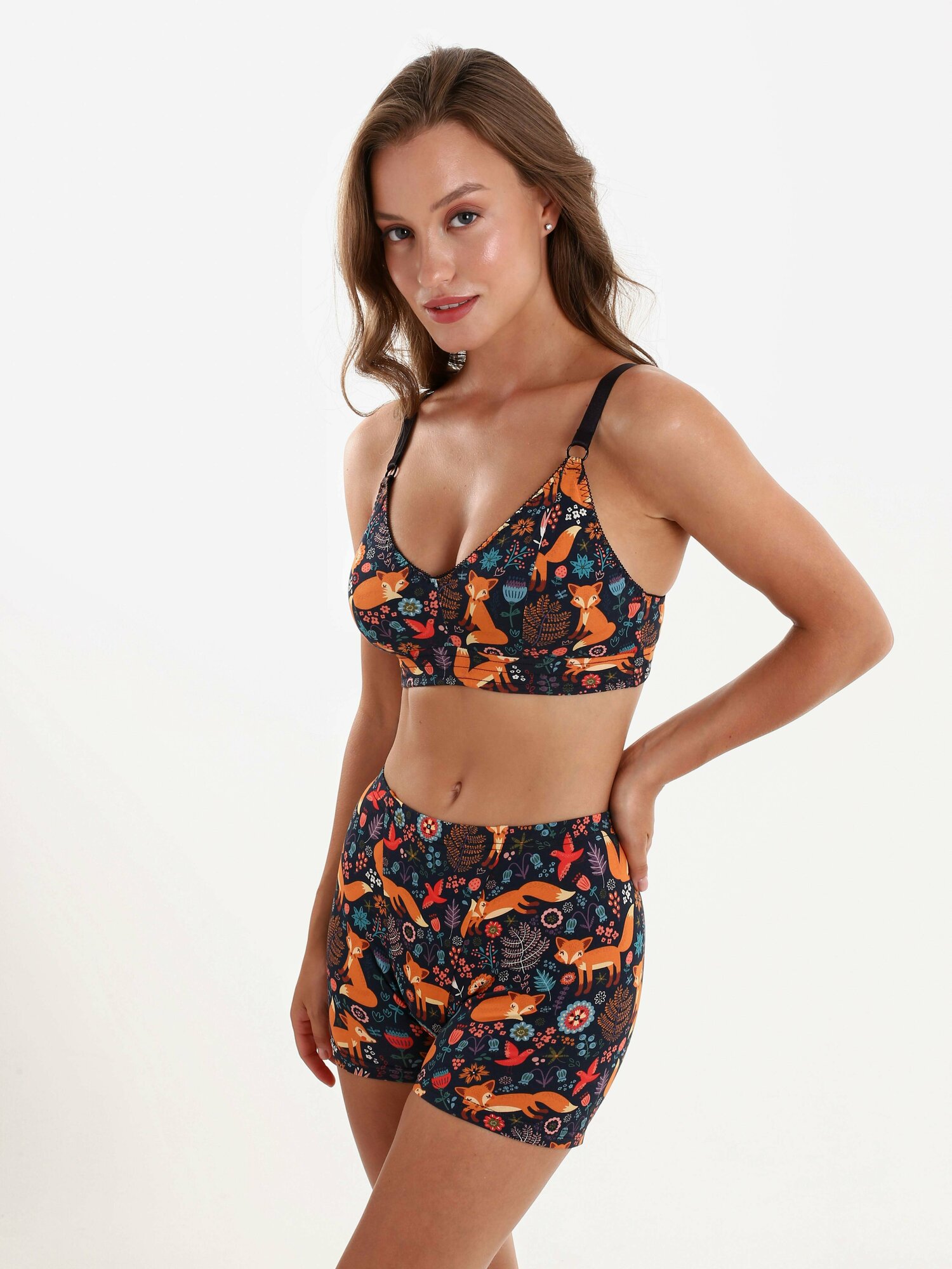 Бюстгальтер без косточек, лиф для большой груди, хлопковый топ с принтом la-lama "Лисички" XS/S