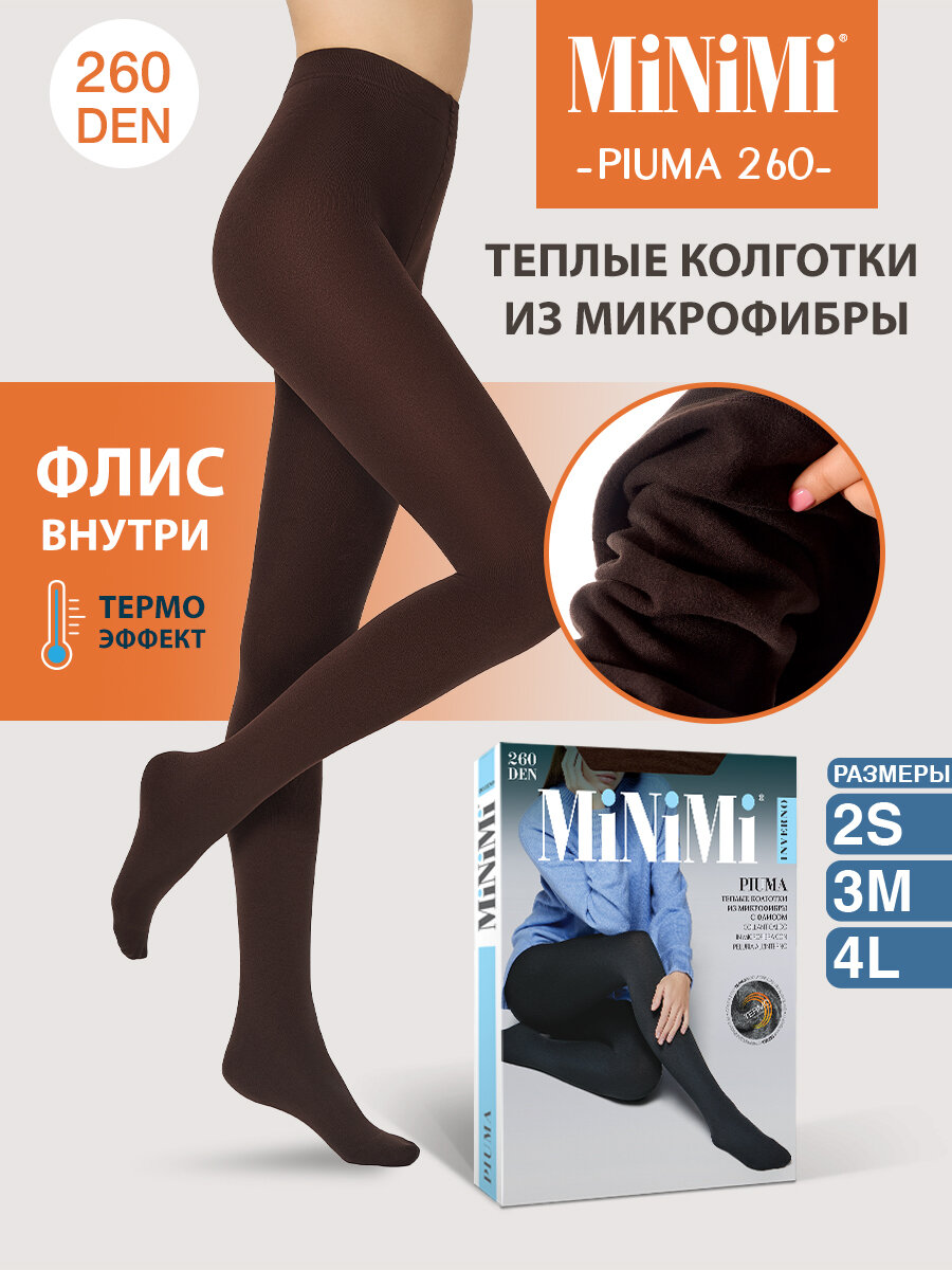 Колготки женские гладкие снаружи с флисом внутри MiNiMi Piuma 260 den, размер 2=S с ластовицей, цвет Moka=Тёмно-коричневый