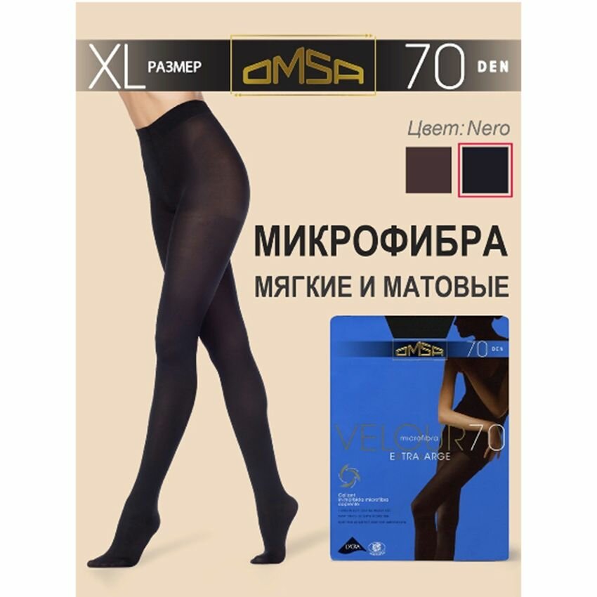 Купить Колготки Omsa "Velour", 70 ден, Nero, черные, размер 5XL