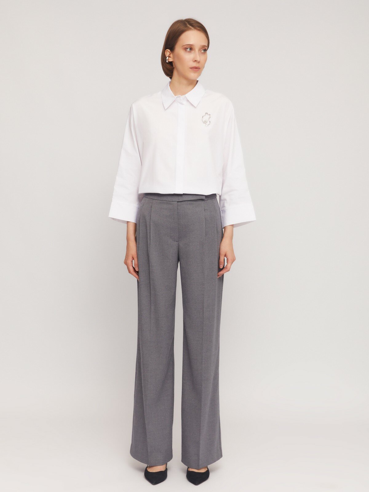 Брюки прямого фасона со стрелками, цвет Темно-серый, размер S 024327366063