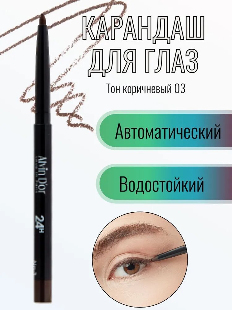 Купить Alvin D'or Карандаш для глаз гелевый водостойкий LASTINGLINER тон коричневый 03