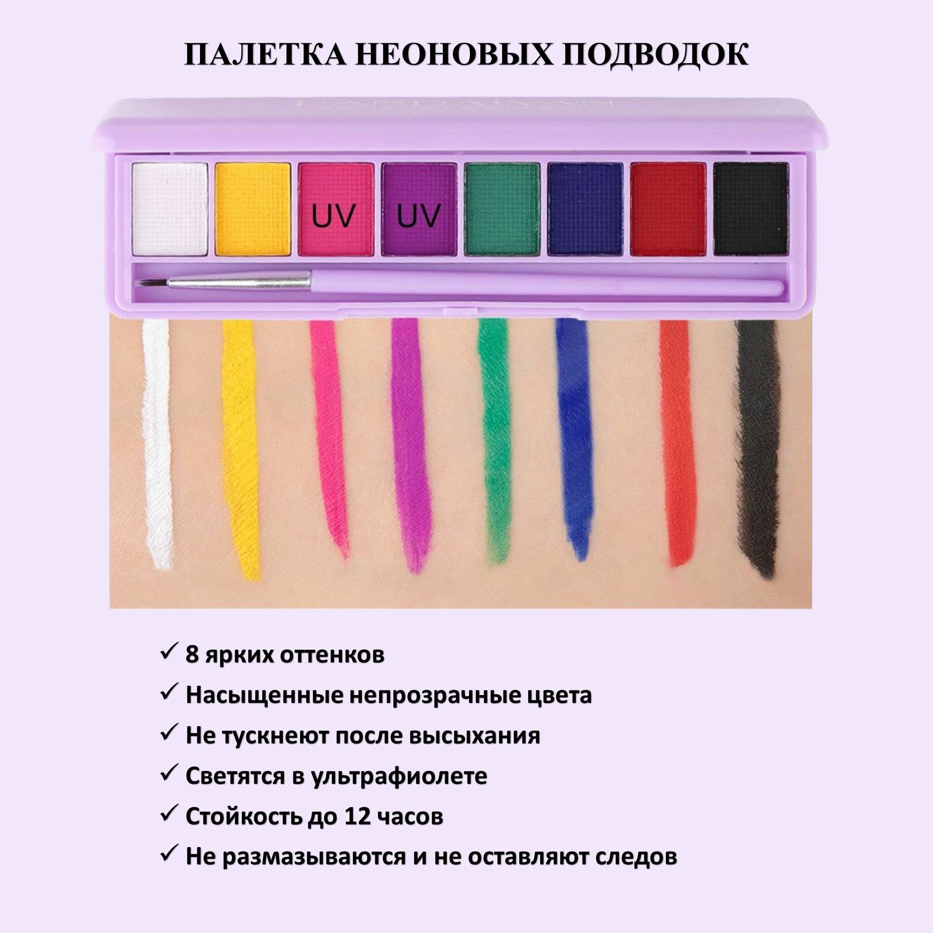 | Комплектаци | Палетка ярких подводок для глаз 8 цветов, кисточка в наборе. |