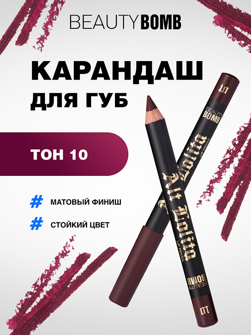 Карандаш для губ Beauty Bomb устойчивый Lip Pencil Alt Lolita, тон 10 интересное: