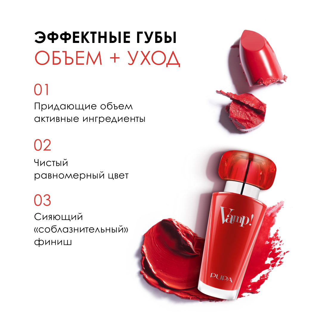 PUPA Помада для губ кремовая увлажняющая VAMP! №303 культовый красный