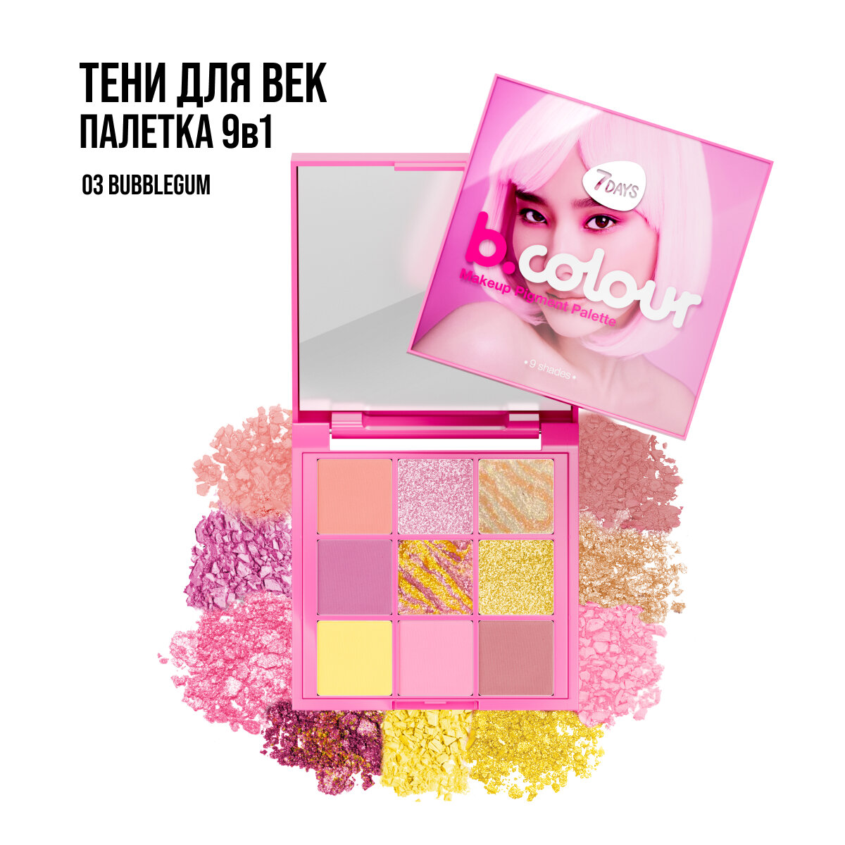 7DAYS Тени для век палетка матовые, блестящие, стойкие, B.COLOUR 03 BUBBLEGUM
