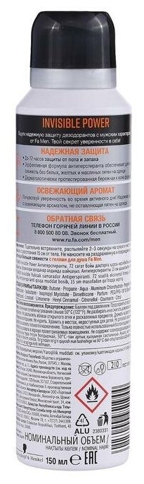 Дезодорант-аэрозоль Фа Men Invisible Power 150 мл интересное: