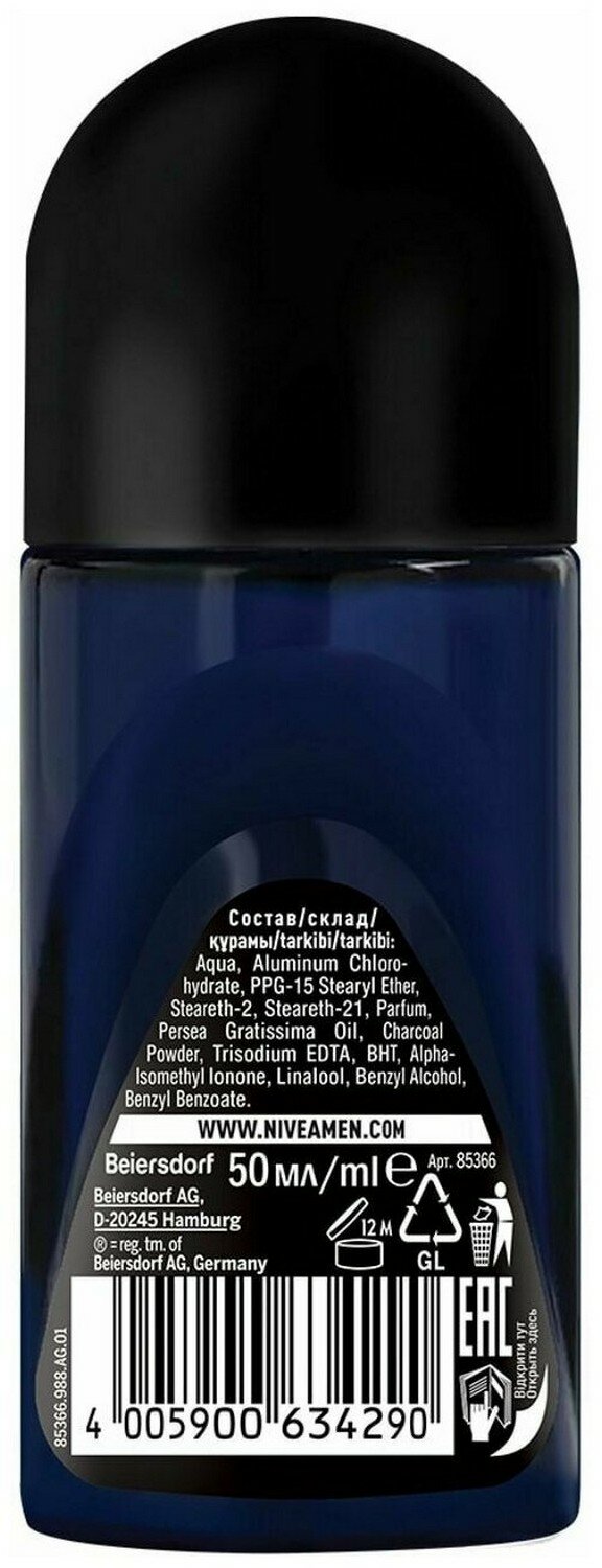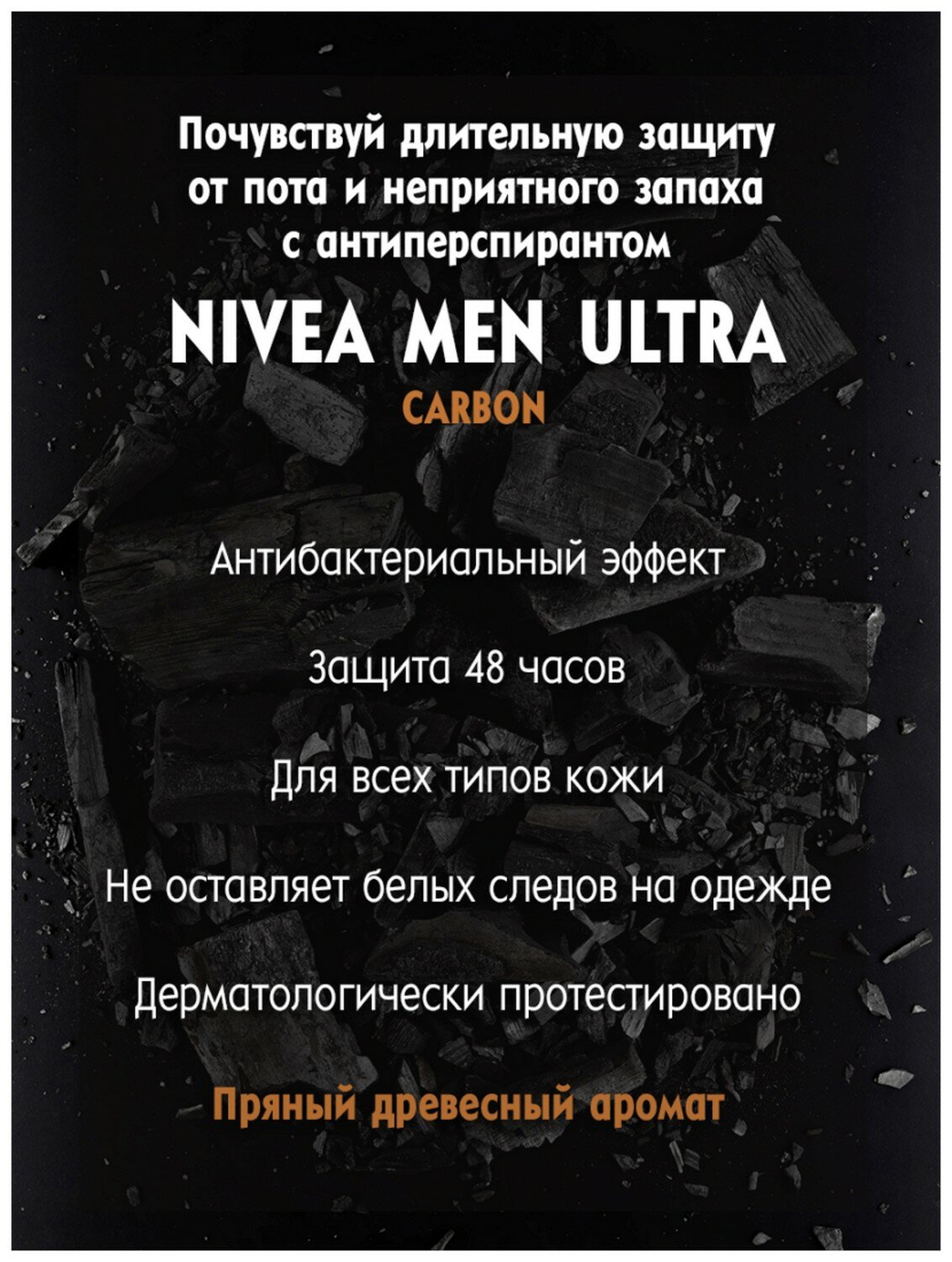 | Дополнительная информация | содержит черный уголь; для всех типов кожи; не оставляет белых следов на черной одежде; дерматологически протестировано; пряный древесный аромат |