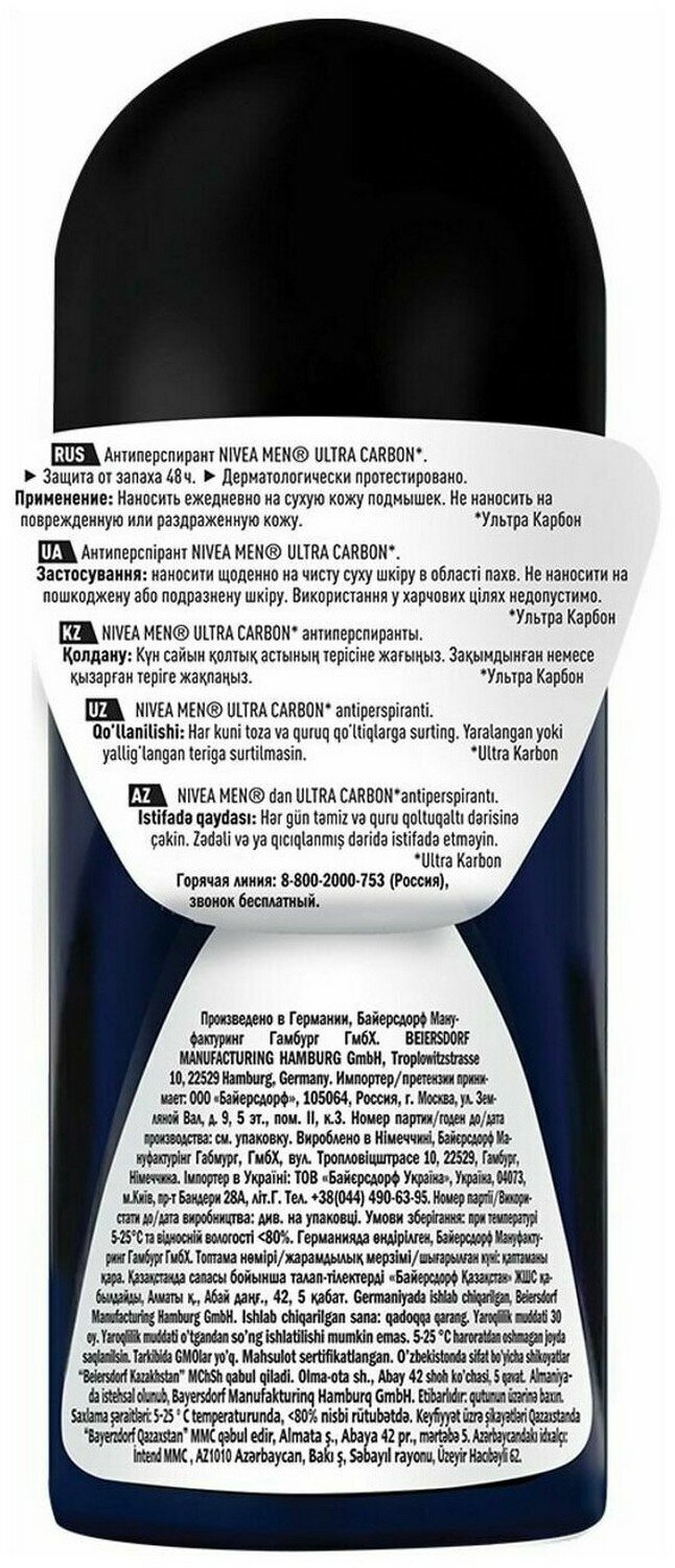 Nivea Men Дезодорант-антиперспирант шариковый Ultra Carbon, 50 мл - 2 шт интересное: