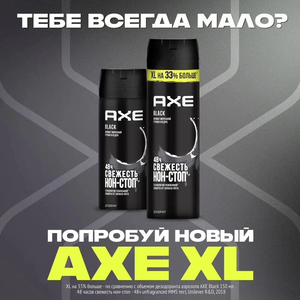 AXE мужской дезодорант спрей BLACK, Морозная груша и Кедр, XL на 33% больше 200 мл