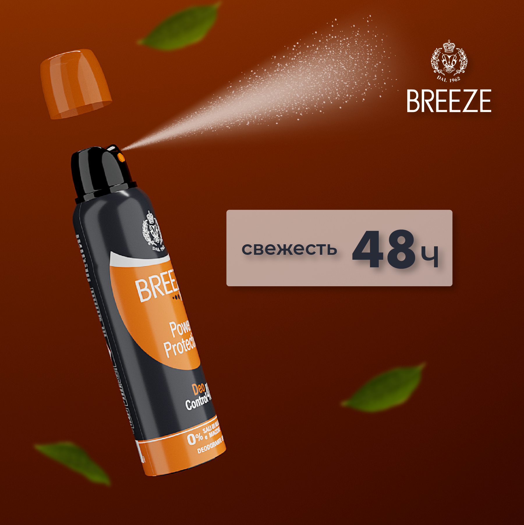 Breeze Мужской дезодорант для тела в аэрозольной упаковке, без солей алюминия, 48 часов Power Protection 150 мл интересное: