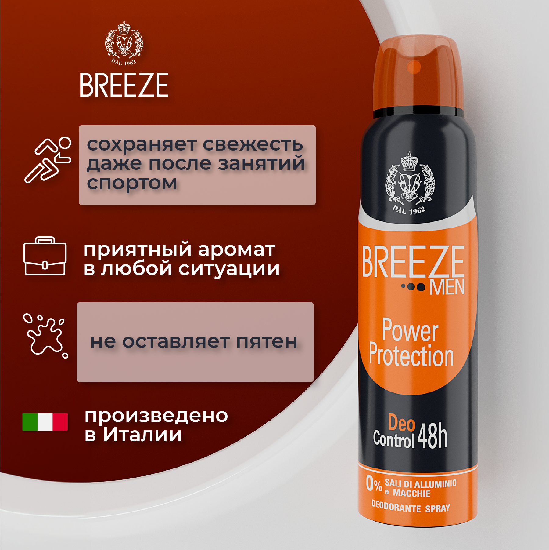 Купить Breeze Мужской дезодорант для тела в аэрозольной упаковке, без солей алюминия, 48 часов Power Protection 150 мл