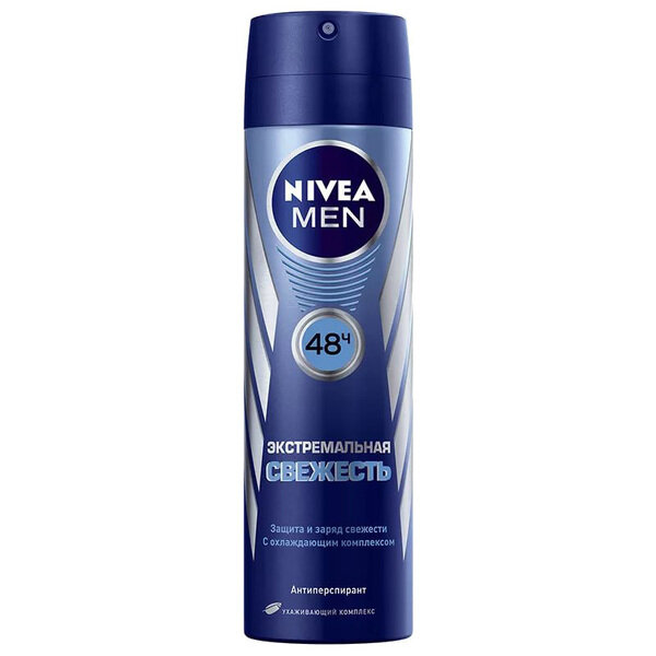 Ниже Вы можете прочитать отзывы на Антиперспирант спрей Nivea MEN Экстремальная свежесть, 150 мл, ознакомится с подробными характеристиками, посмотреть интересные обзоры и фотографии на Антиперспирант спрей Nivea MEN Экстремальная свежесть, 150 мл.