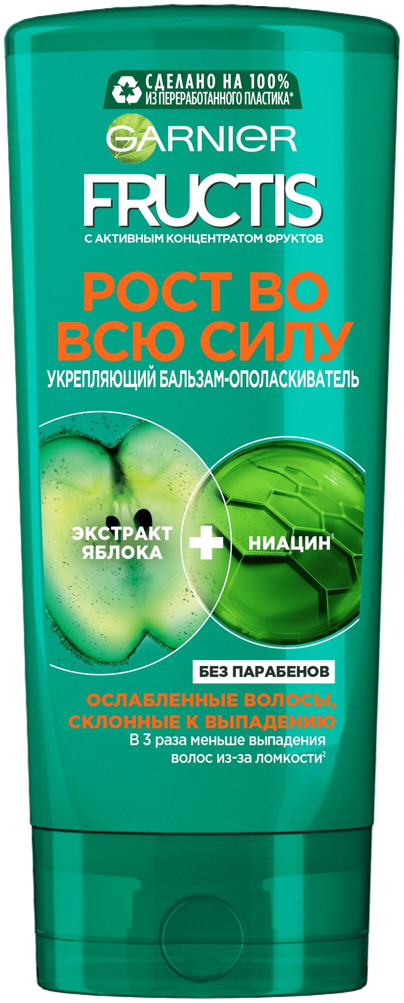 Garnier Fructis Бальзам-ополаскиватель для волос Рост во всю Силу укрепляющий для ослабленных волос, склонных к выпадению, с экстрактом яблока и ниацином, 387 мл