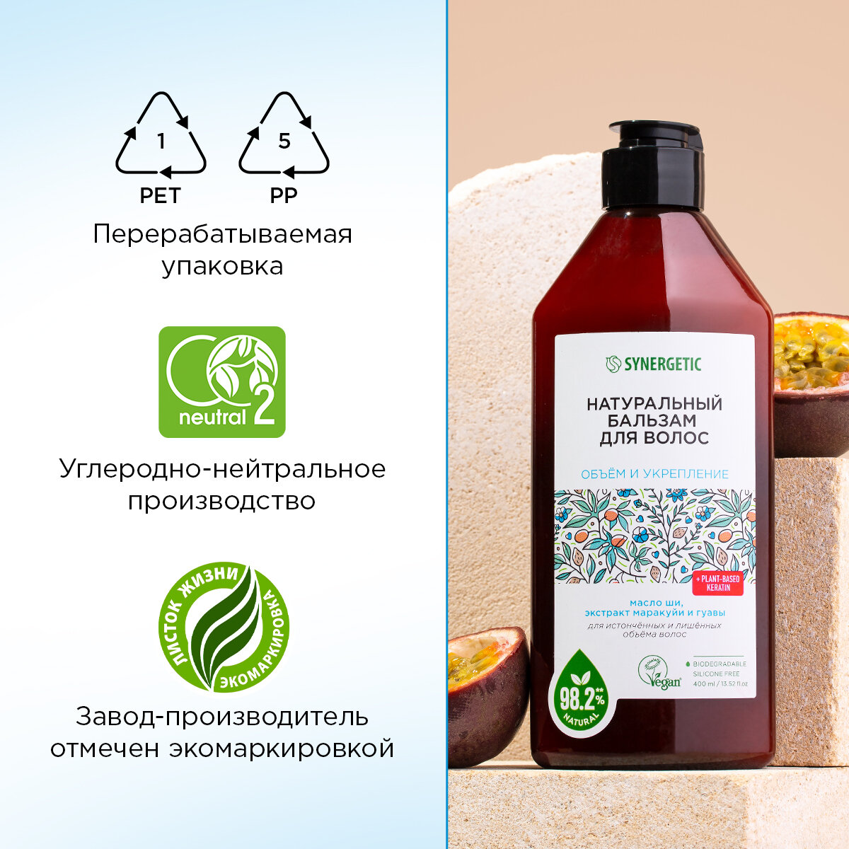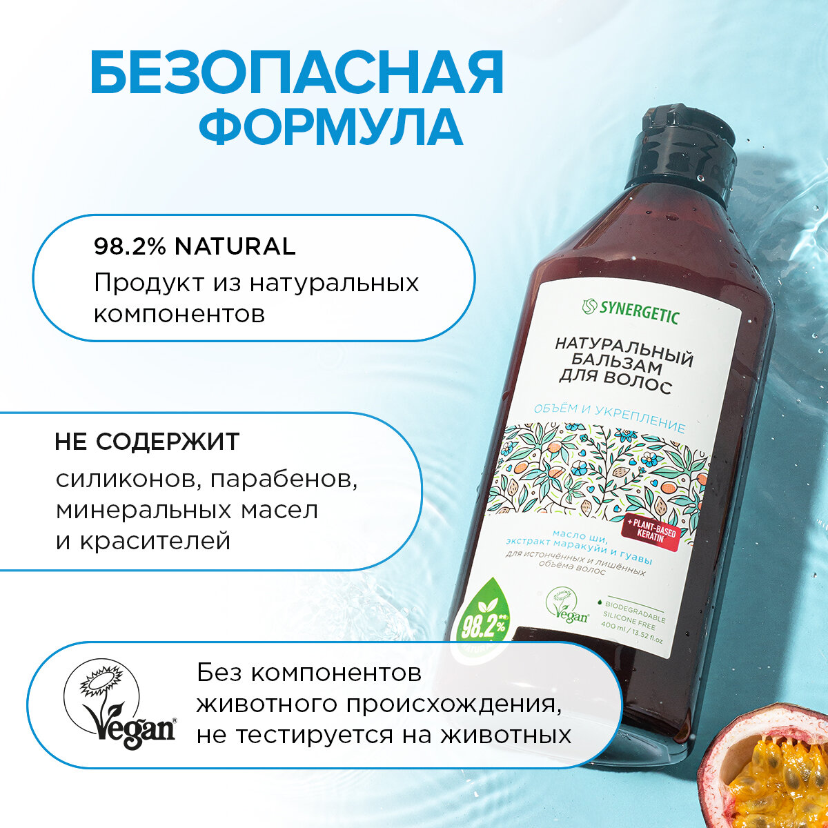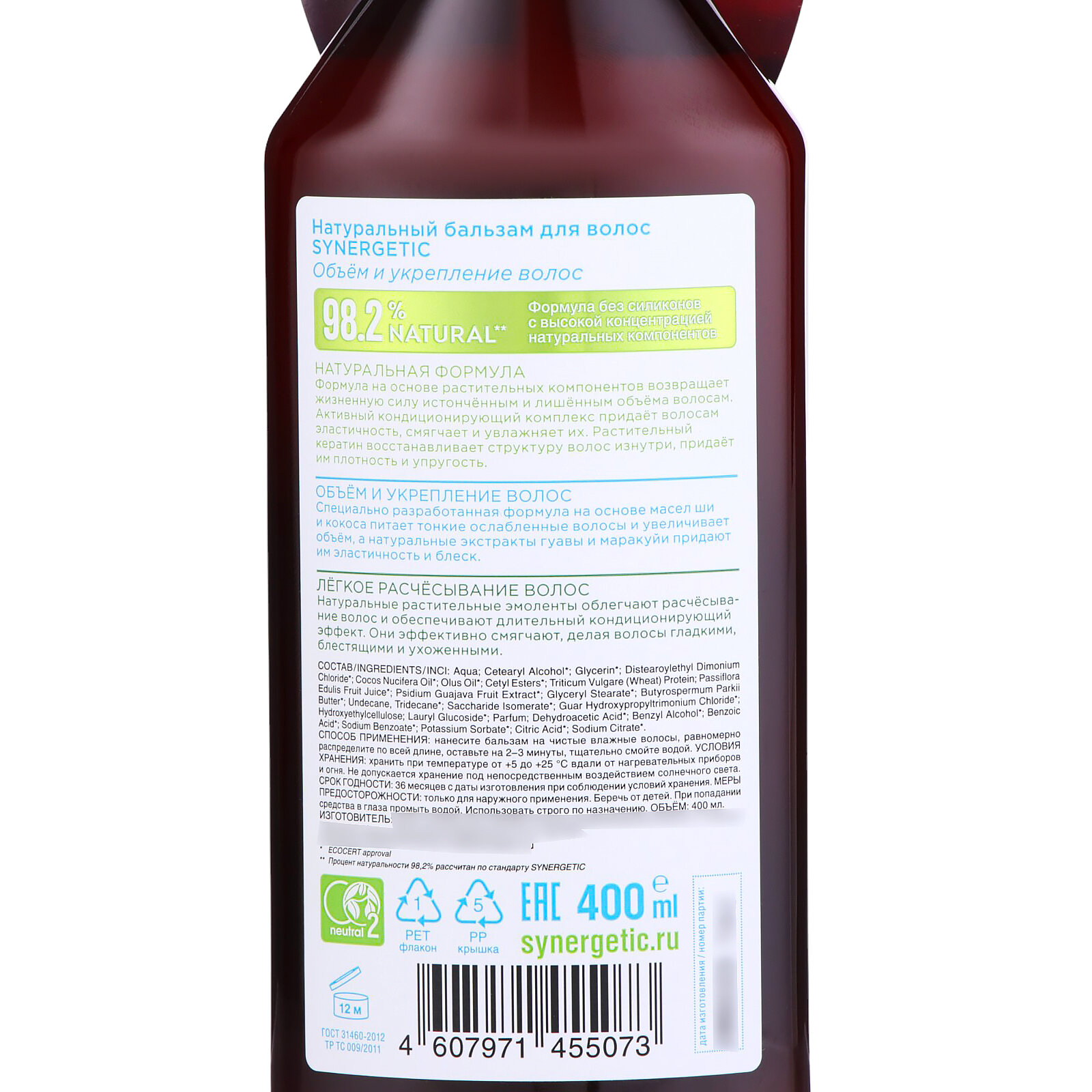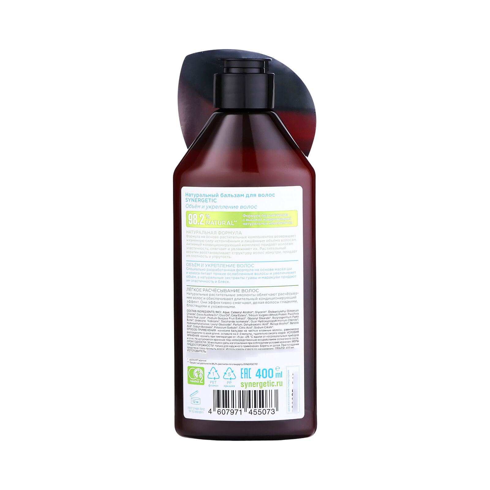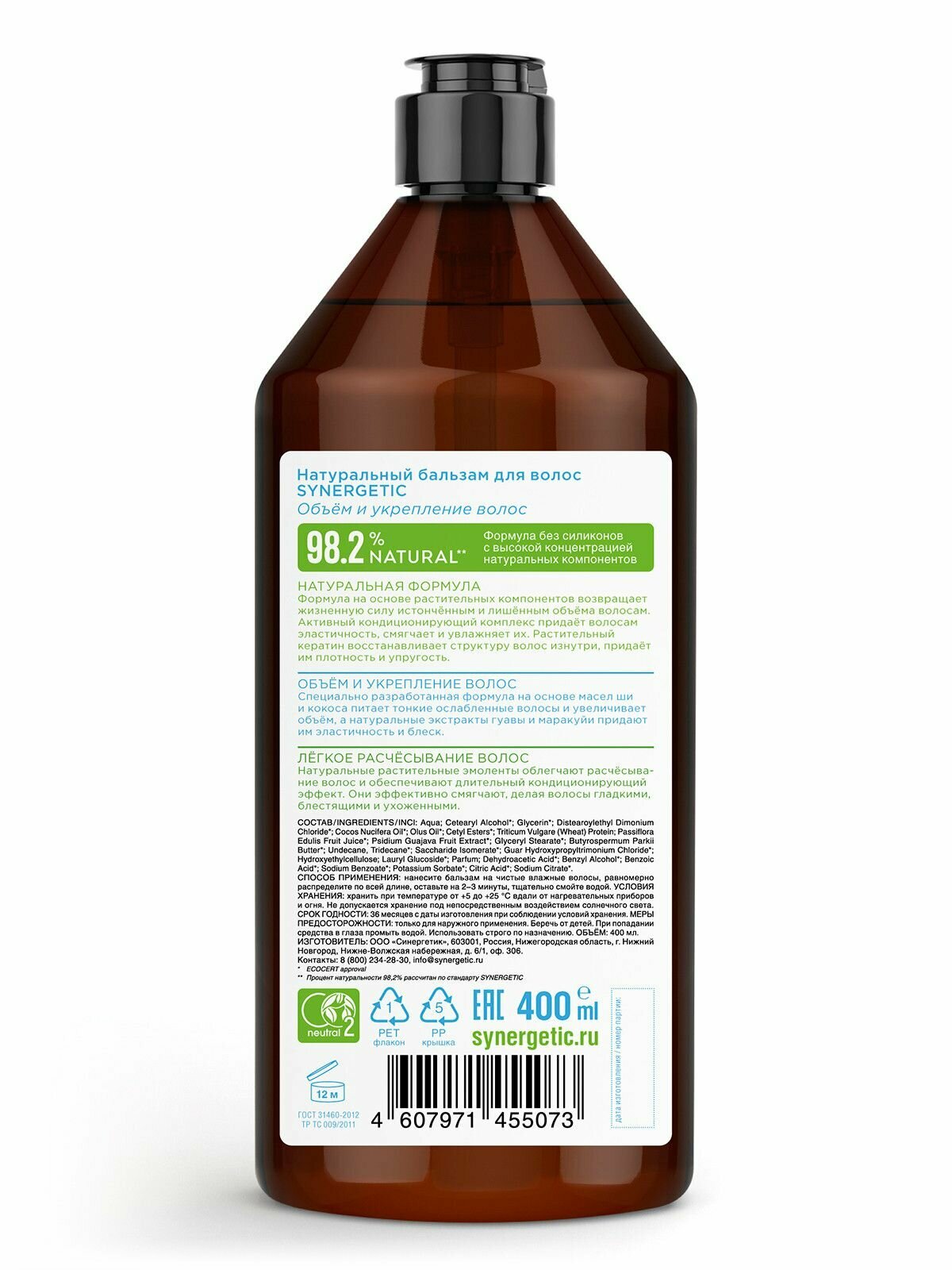 Купить Бальзам для волос Synergetic Натуральный, объем и укрепление, 400 мл (4607971455073)