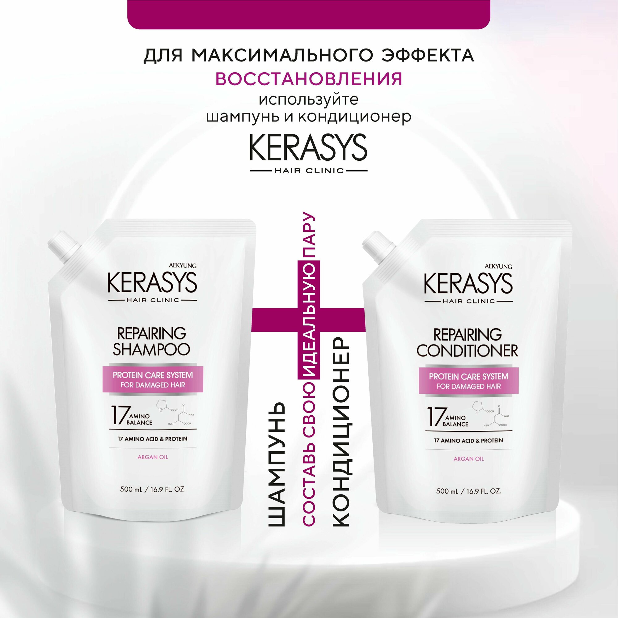 Aekyung Kerasys Repearing Кондиционер для волос Восстанавливающий 500 мл запасной блок