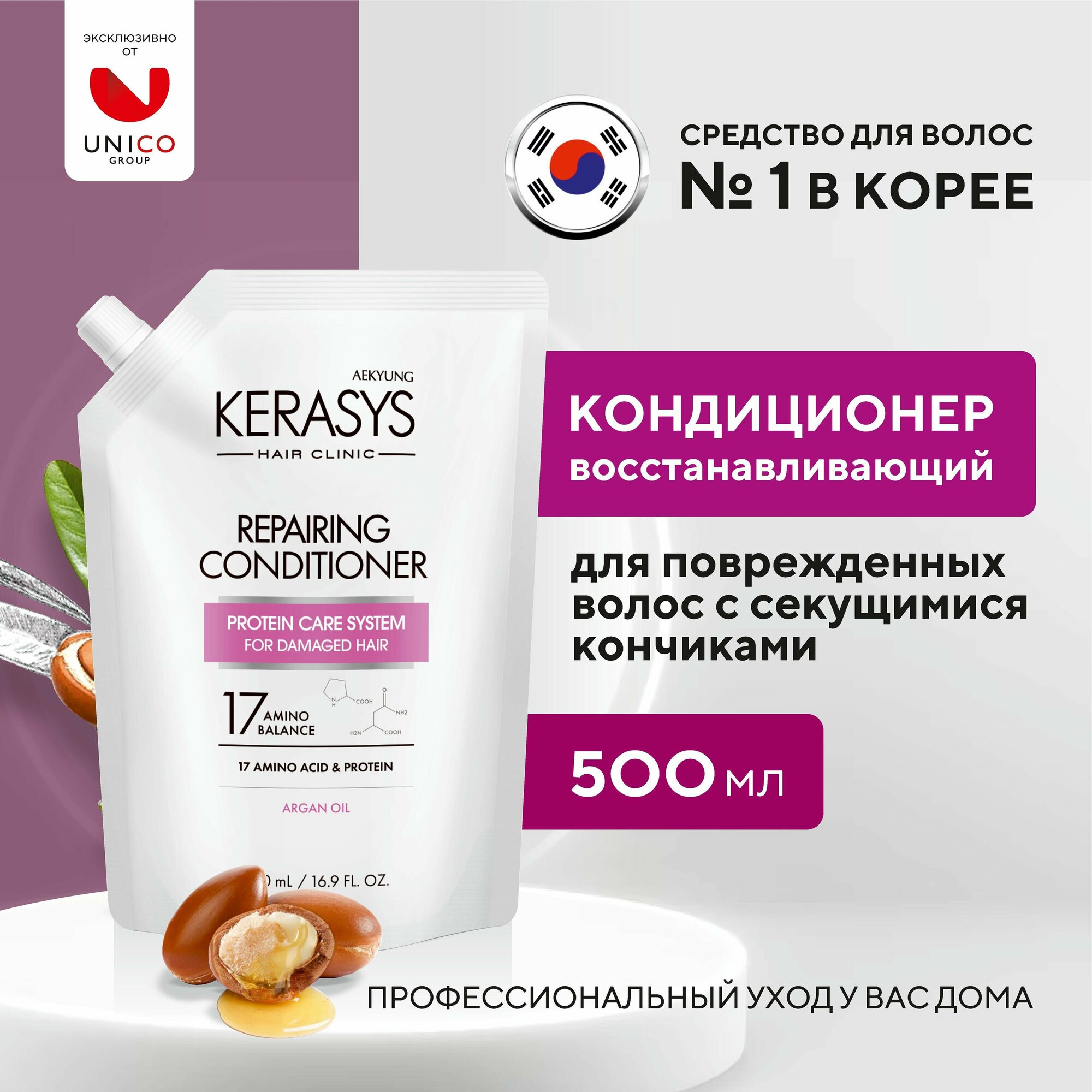 Kerasys Кондиционер для волос восстанавливающий корейский протеиновый бальзам для поврежденных, окрашенных, сухих и ослабленных волос, женский Корея