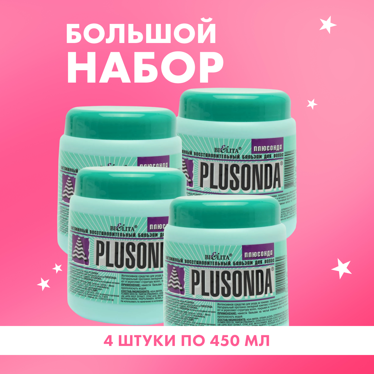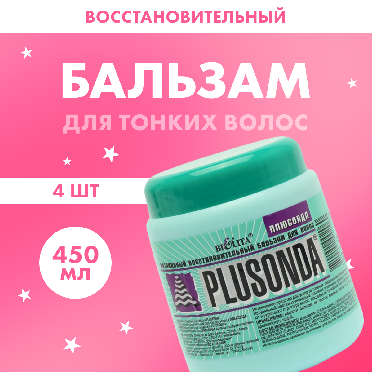 Купить Бальзам Belita для волос восстановительный Плюсонда 4 шт по 450 мл