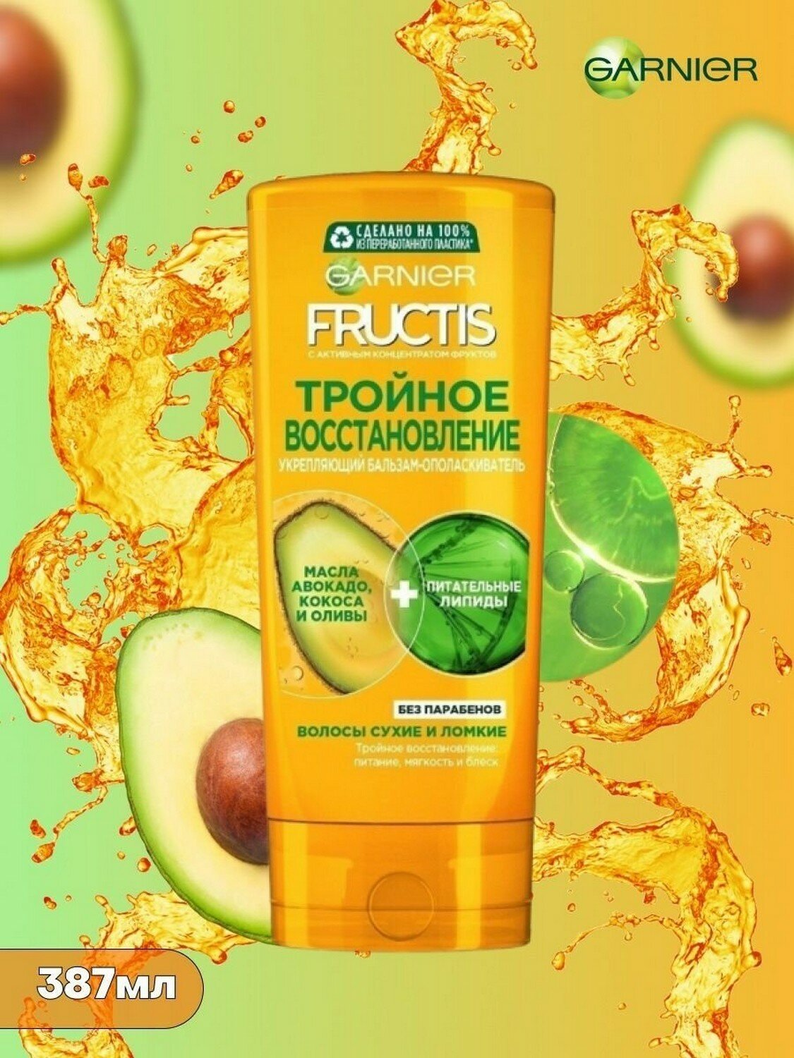 Garnier Fructis Укрепляющий бальзам-ополаскиватель Фруктис, Тройное Восстановление, для сухих и ломких волос, 387 мл