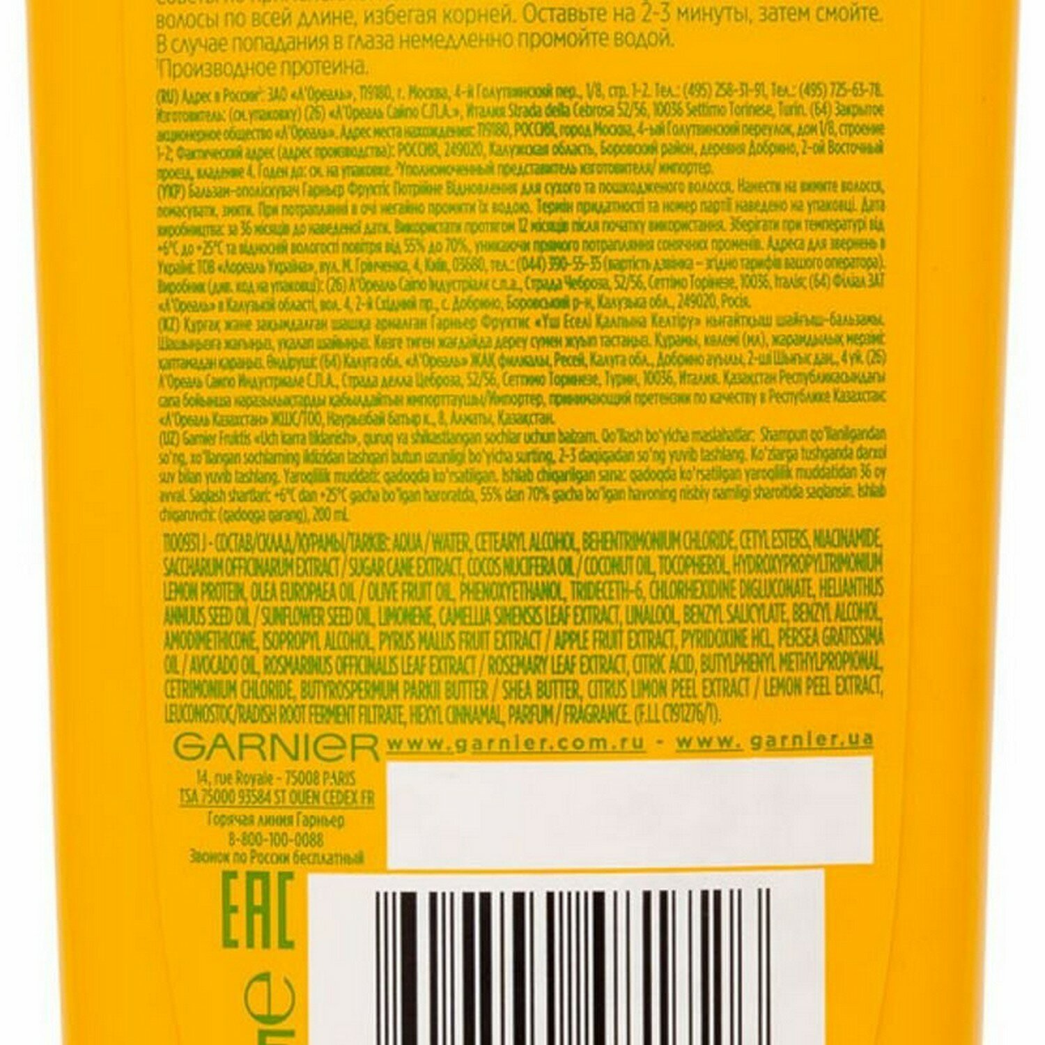 Garnier Fructis Укрепляющий бальзам-ополаскиватель Фруктис, Тройное Восстановление, для сухих и ломких волос, 200 мл
