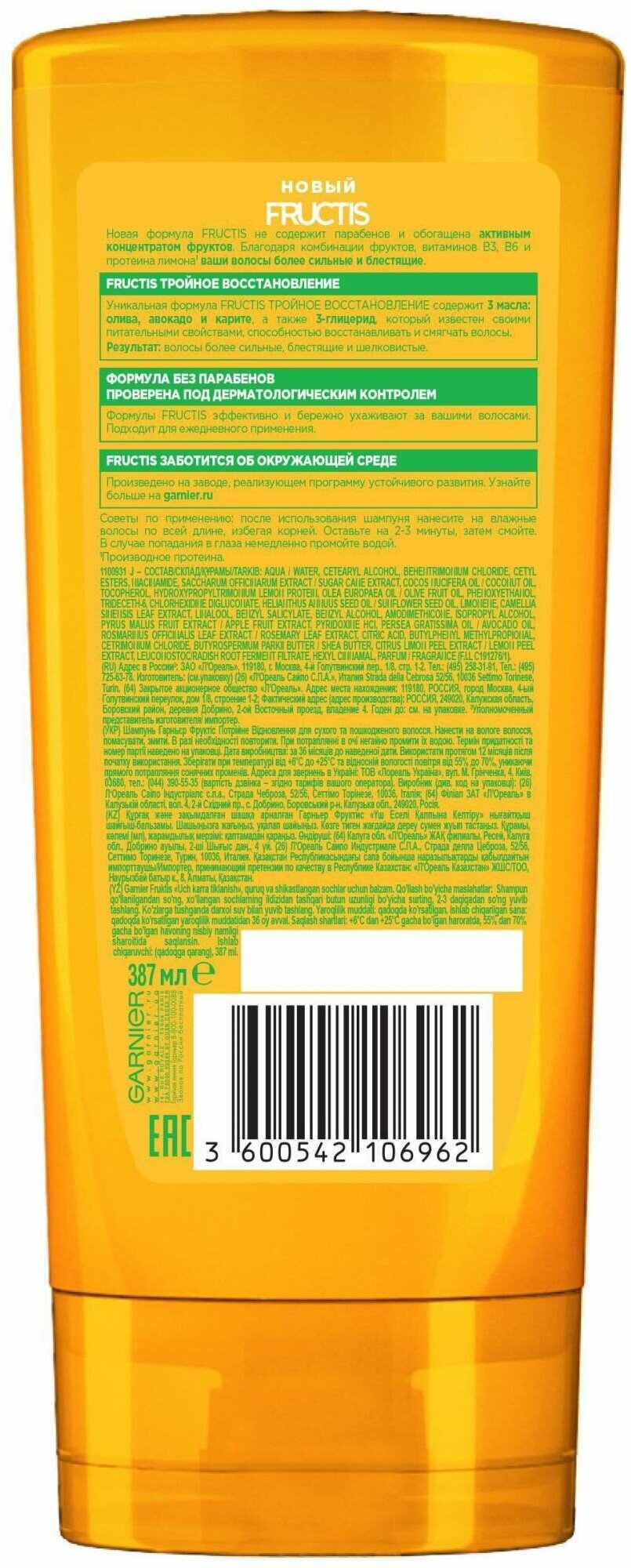 Купить Garnier Бальзам для волос, Fructis, Тройное восстановление, 387 мл., 2 шт.