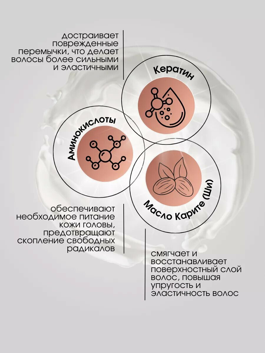 | Эффект | антистатик / восстановление / защита от негативного воздействия окружающей среды / защита цвета / облегчение расчесывания / питание / придание блеска / придание мягкости / придание эластичности / против секущихся кончиков / разглаживание / увлажнение / укрепление / уплотнение волос |