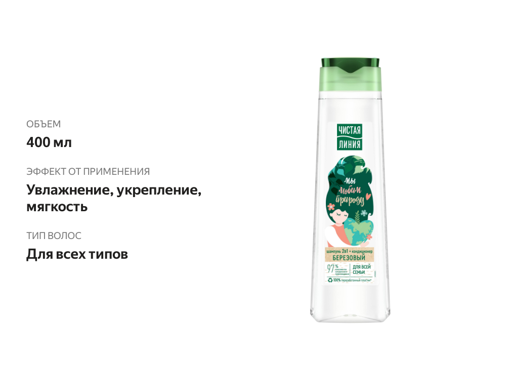 Чистая Линия Шампунь для всей семьи Березовый 2в1 400 мл 1 шт