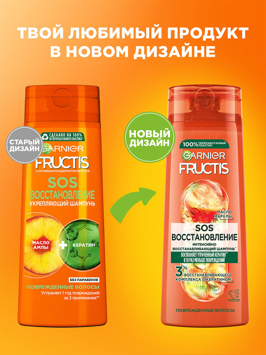 Fructis Шампунь для волос SOS Восстановление, укрепляющий, для секущихся и очень поврежденных волос, с Керафилом и Маслом Амлы, 400 мл