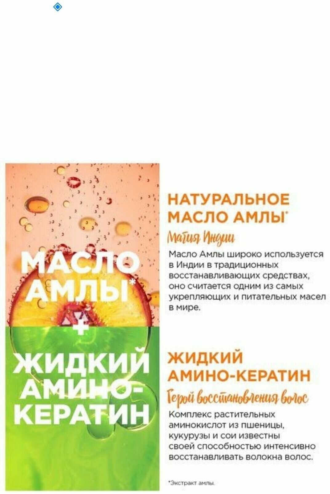 | Масла и экстракты | кокосовое масло / комплекс масел / льняное масло / масло амлы / масло лимона / экстракт амлы / экстракт граната / экстракт грейпфрута / экстракт зеленого чая / экстракт лимона / экстракт огурца / экстракт редиса / экстракт сахарного тростника / экстракт яблока / экстракт ягод годжи |