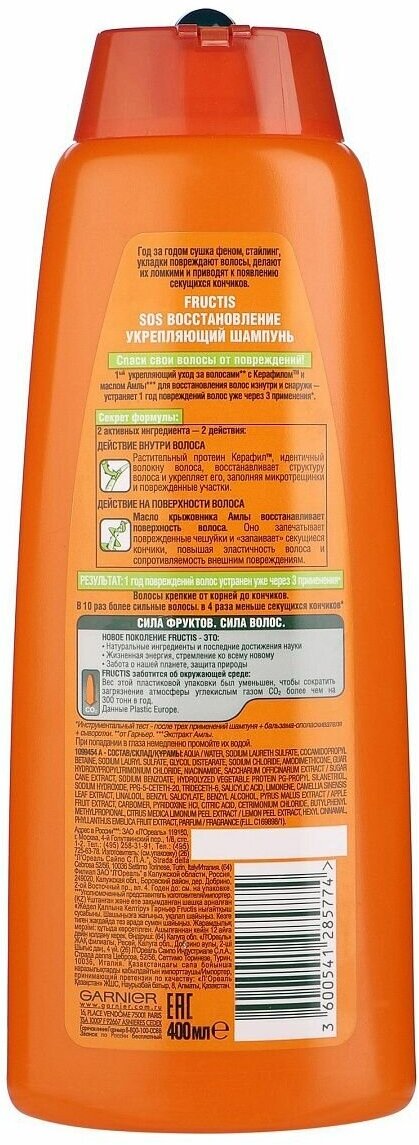 Купить GARNIER укрепляющий шампунь для волос Fructis SOS Восстановление, 400 мл