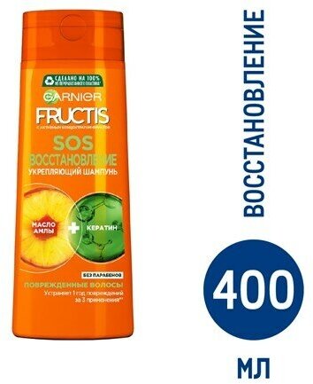 Fructis Шампунь для волос SOS Восстановление, укрепляющий, для секущихся и очень поврежденных волос, с Керафилом и Маслом Амлы, 400 мл